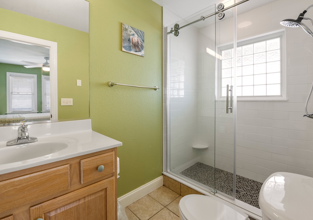 Easy beach access (less than 200 yards). Convenient boardwalk style path leads from the driveway around back to the outside shower in the private pool area.