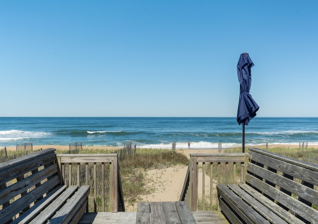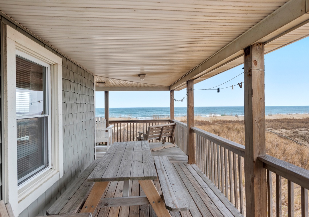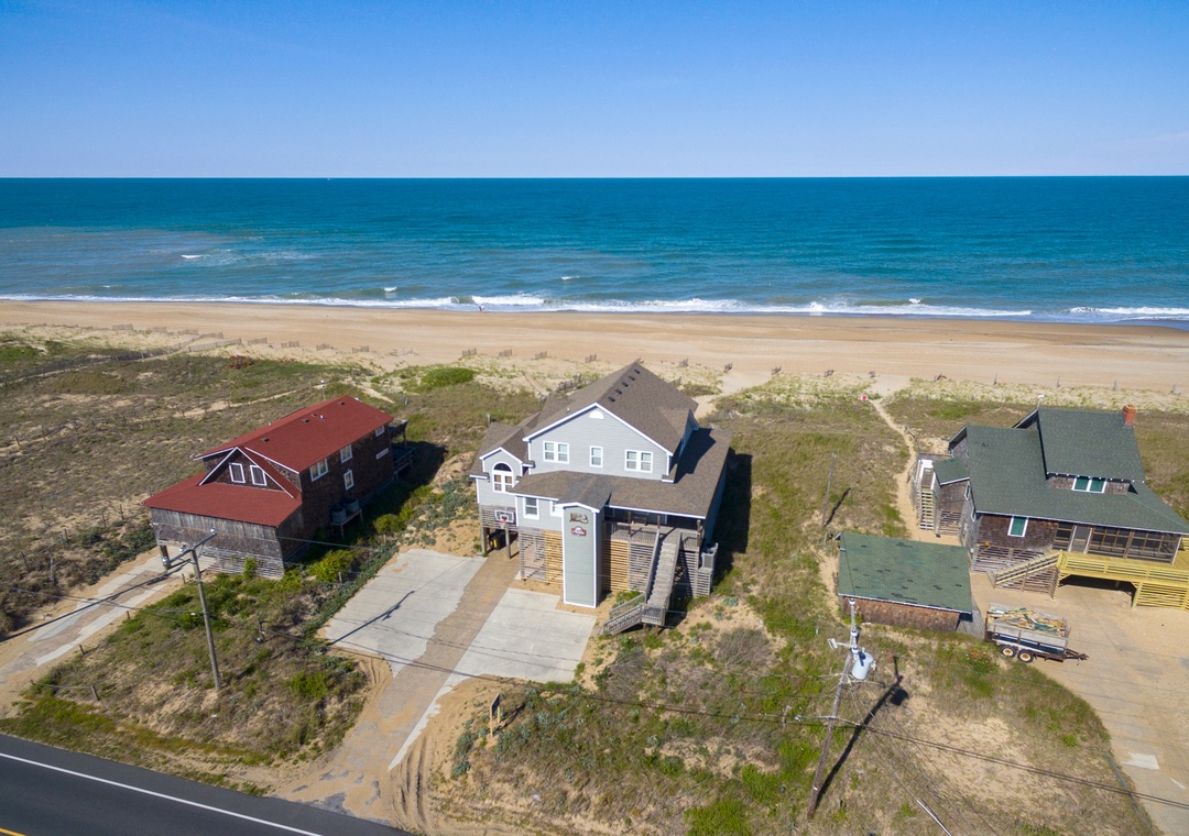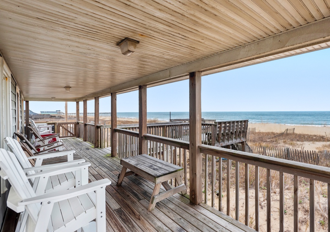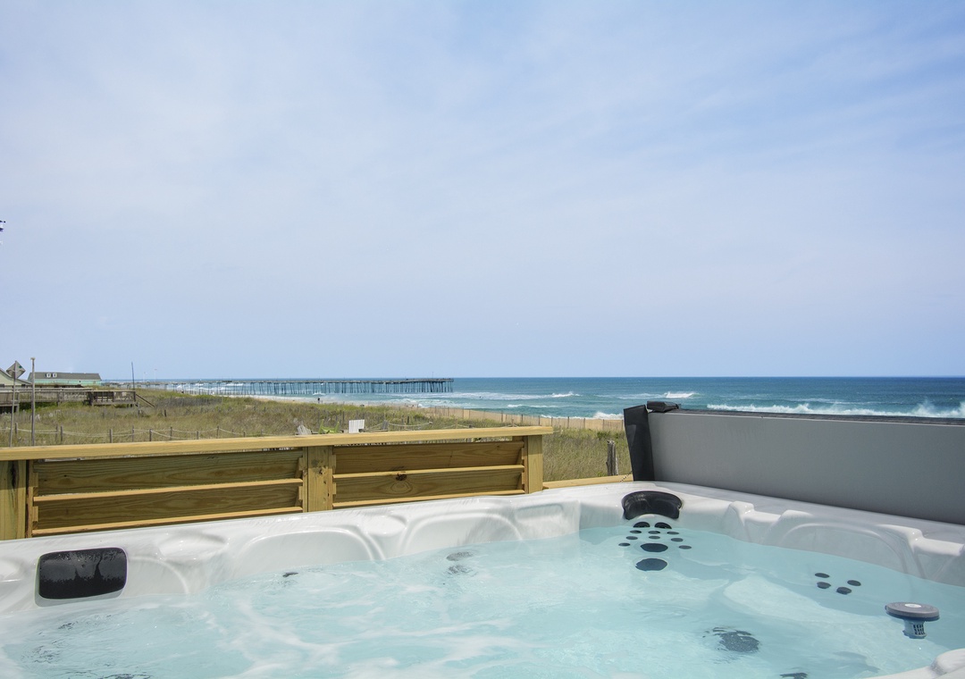 Take in the incredible views through the oversized windows in the living area and kitchen. Spend lazy afternoons in the shade while enjoying ocean breezes on the wraparound porch. From there, you'll have direct access to the beach, as well as an open deck where you can relax in the extra large hot tub under the sun or stars. Arcadia is situated on a higher elevation than the adjacent homes, allowing for an unobstructed 180-degree view of the ocean from the dune-top deck.