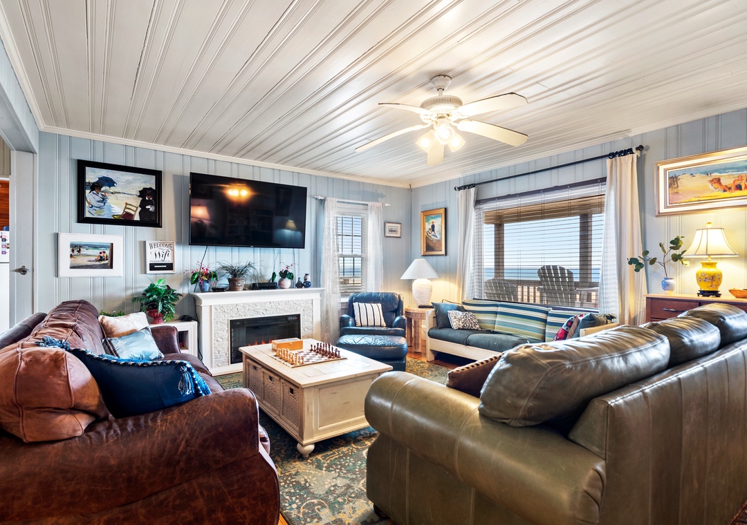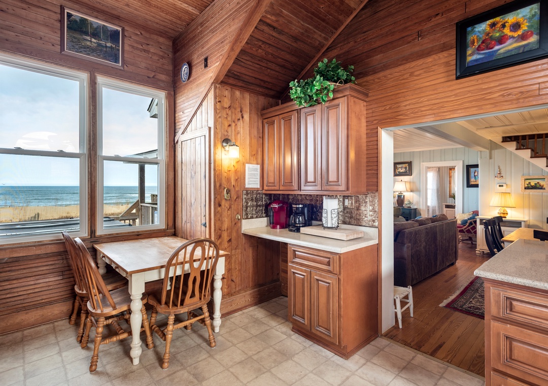 Our family of six absolutely loved our stay in Arcadia! The furnishings both inside and out were perfect. Arcadia has successfully combined history and modern conveniences. The layout of the home is ideal in terms of providing areas to gather as a large group or cozy spaces where one can curl up with a great book. We also enjoyed the option of being able to all sit at the dining table or at the smaller table with a view of the ocean each morning. The art displayed throughout the home is beautiful and added a feeling of warmth in each room. It was impossible to pick a favorite piece and the collection of black and white photographs took us back in time with lots of smiles. The views from the upstairs living area and bedrooms were unbeatable! It was a delight to wake up each morning to the waves. We were fortunate in that we experienced every kind of weather the Outer Banks can offer within our one week stay. (Earlier in our stay it was rather cold and windy so the fireplace was a delight. Later in the week our son was ready to splash in the waves.) The ocean front location was ideal as we had guests who ranged in age from 11 yo to almost 80 yo. The elevator made loading and unloading much easier. The hot tub was such a relaxing way to end the day! (We found it very easy to use and cover.) We spent a great deal of time on the deck when we were not exploring the beach. I highly recommend Arcadia for your next vacation and hope to be back again!- Reviewed On: 4/1/2023
