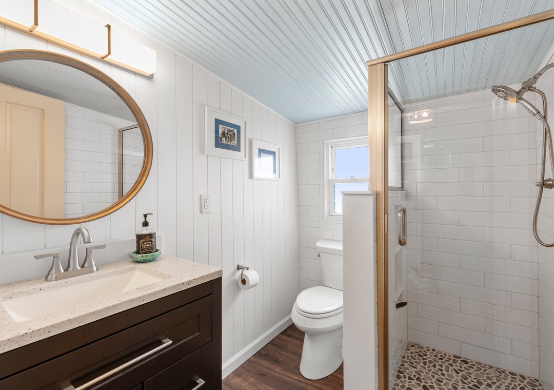 This delightful property boasts 3 spacious bedrooms and a fully renovated kitchen that will inspire your culinary adventures. The middle level bathroom has also been beautifully updated for your comfort. This home also offers a guest house with a king bed that can serve as alternative sleeping arrangements for guests who prefer additional separation and privacy.