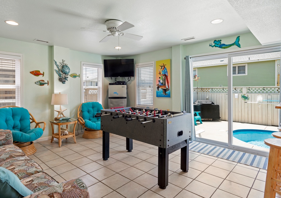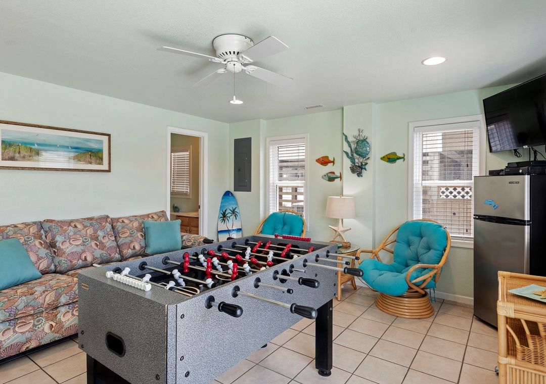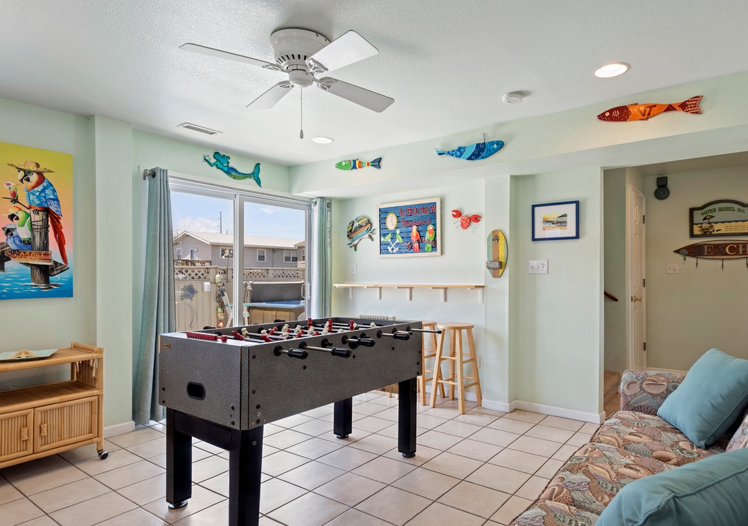Starry Nights was designed with your family's vacation needs in mind. Take in the ocean view from the top-level deck while you enjoy your morning coffee watching the sunrise over the Atlantic and in the evening catch those awesome OBX sunsets from the back deck. Spend an afternoon poolside, lounging under the summer sun, or enjoy the Starry Nights in the hot tub relaxing after a day of fun-filled adventures. Indoors, a game room with a foosball table and Ms. Pac Man arcade game offers entertainment on cloudy days or evenings. Comfortably furnished, nicely decorated & well equipped, you will love all the luxury this dog-friendly home has to offer.