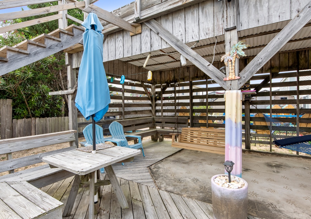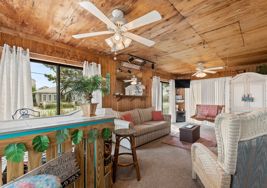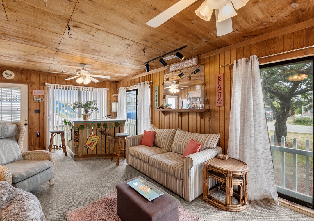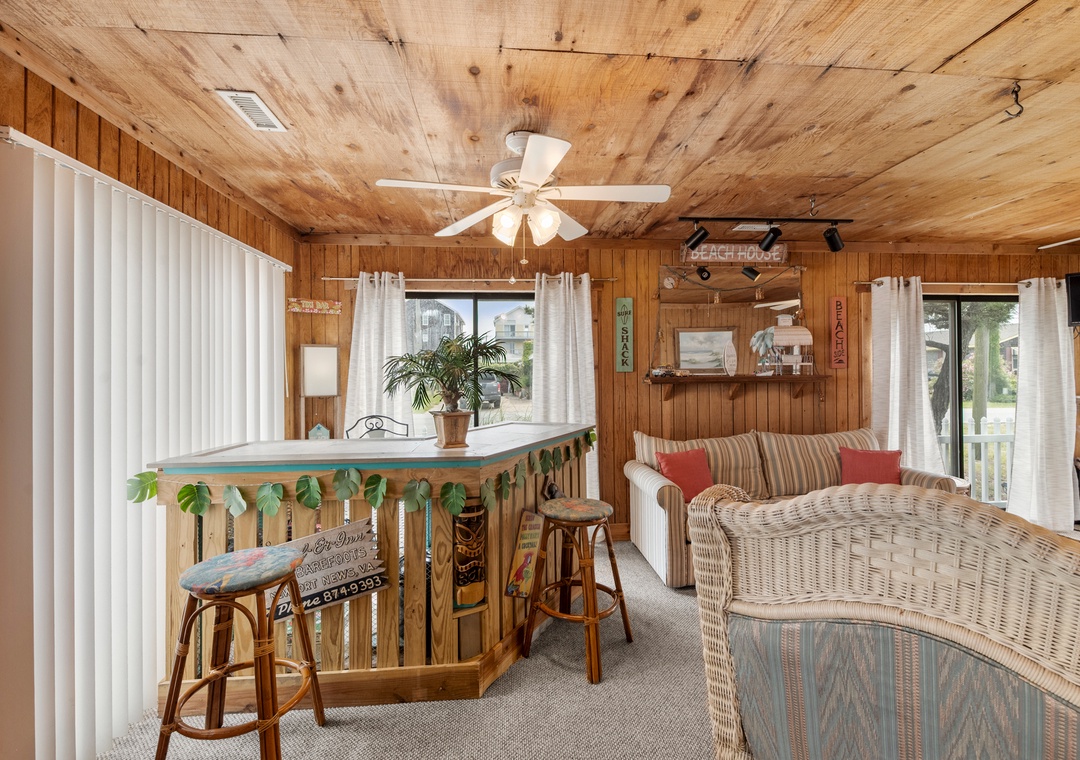 Kick off those flip flops and feel the Barefoot Joy when you stay at this classic OBX beach cottage in Kill Devil Hills. The prime oceanside location means you'll be just a short walk to the Avalon beach access and pier. Use the beach cart to easily transport all of your gear. Barefoot Joy is the perfect choice for guests who want to spend their vacation surfing, fishing or simply enjoying the beautiful sights of the sparkling Atlantic. After a day of fun in the sun, head back to the house and get happy hour started in your very own backyard oasis. This fabulous outdoor space includes a tiki bar, grilling area with picnic table and covered sitting area. Climb the stairs to the observation deck where you can lounge in the sun while enjoying an ocean view. Inside, you'll find three bedrooms including a king ensuite, and an open-concept living/dining area with a well-stocked kitchen for preparing meals at the house. Start your day with a delicious latte using the Nespresso machine, and wind down for happy hour at the bar in the den. Pets are welcome, so bring your four-legged friends along for the beach vacation of a lifetime.