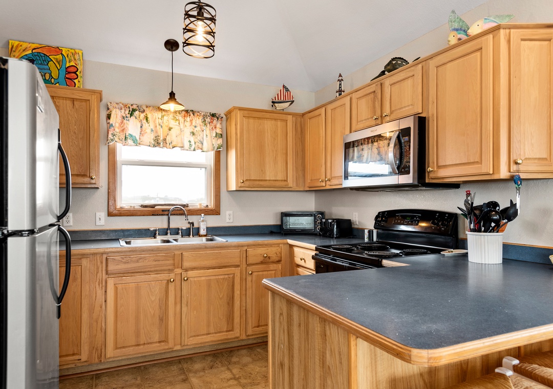 • Standard Kitchen Amenities All kitchens are adequately stocked for everyday meal preparation and include the following: stove, oven, microwave, refrigerator w/ icemaker, coffee maker, toaster, blender, hand mixer, cookware, glassware, dishes and utensils.