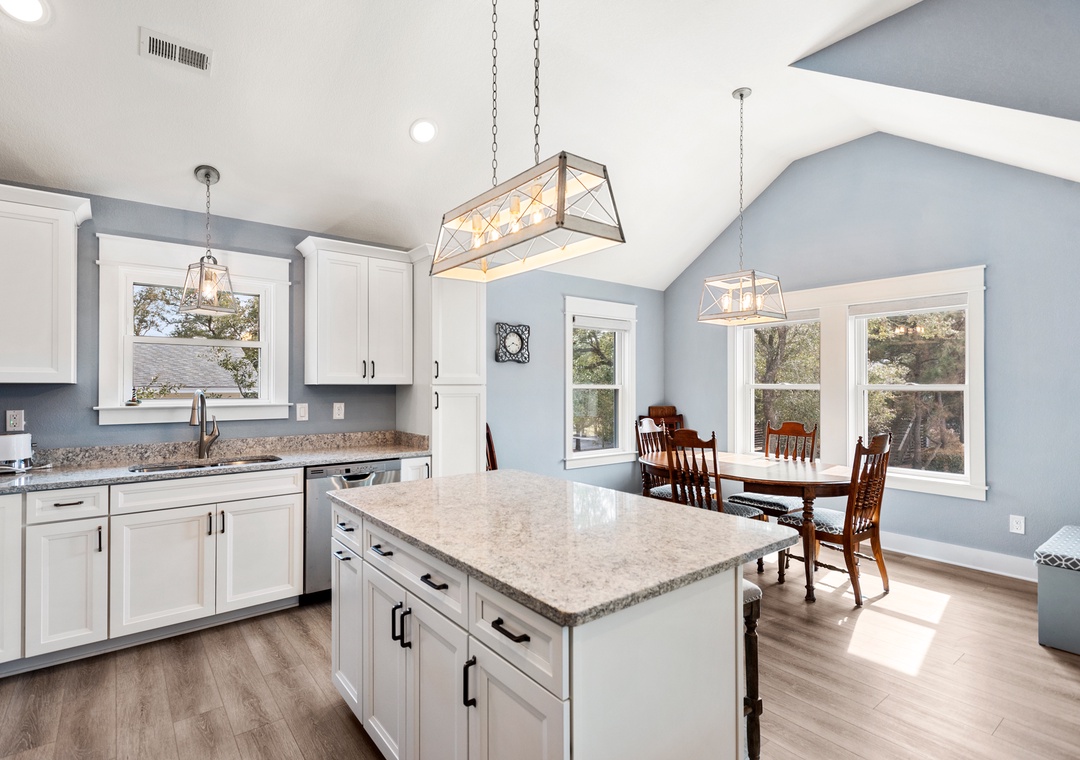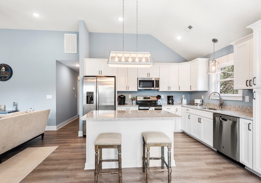 Gull Point Too is a newly constructed home centrally located at milepost 6.5 in Kill Devil Hills. This modern design features quality finishes throughout, including LVT flooring, custom tile, granite countertops and stainless steel appliances. An open-concept layout and vaulted ceilings in the living, dining and kitchen area make the space feel bright and inviting. Everything you'll need is within a mile radius: shopping, groceries stores, a movie theater, mini golf and restaurants including The Jolly Roger and Goombays Raw Bar and Grill. Fishing enthusiasts will appreciate the close proximity to the Avalon Fishing Pier. Best of all, the beach is just a short bike ride away at the nearby Fifth St. public access.