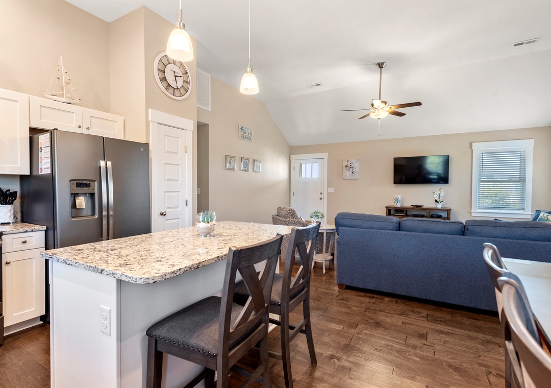 Welcome to Z’s Escape! This newly constructed Beach house is over 1,500 square feet and offers all the comfort you need to have a perfect get away. Enjoy the beautiful coastal décor with an open floor concept, inviting living and dining room. There is a fully stocked kitchen with granite counter tops and stainless-steel appliances. This house has a large master bedroom and two additional spacious bedrooms. Enjoy the view of the sunset from the covered front porch and the first level game room will keep the kids entertained.