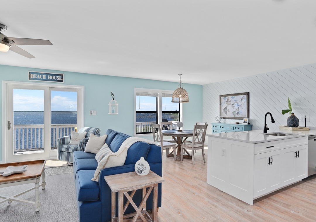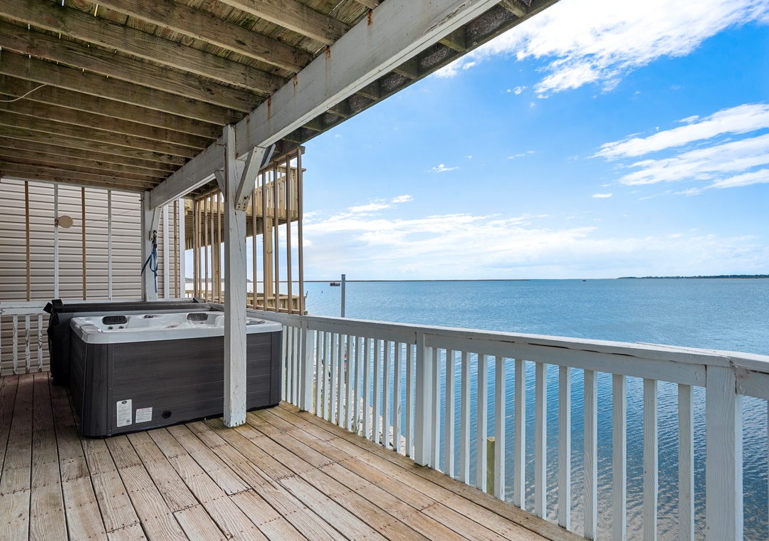 Unforgettable sunsets and views of Kitty Hawk Bay are what you will find at That's What Sea Said. This charming two-bedroom home is the perfect little getaway where you can capture the most amazing sunsets on the OBX. After a long day of fun in the sun, relax in the hot tub with a drink in hand while you plan the next day's adventures. Views of the bay from the great room and bedrooms will be just what you need for total rejuvenation. Dogs are family too so bring your furry friend along.
