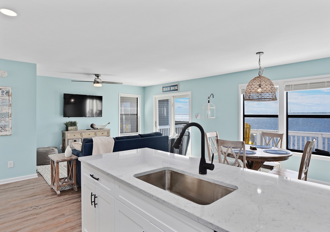 The home was in a great location and had everything we needed. Very open, airy, clean, and a great layout. We usually stay oceanside, however, this time we stayed sound front and are so glad we did. The view is fantastic and the hot tub was wonderful! The neighborhood was quiet yet close to all the area had to offer. We hope to stay again in the future.- Posted: 3/13/2024