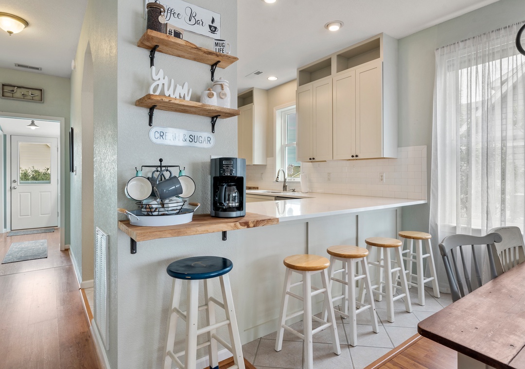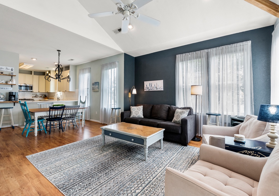 The house is unique, cozy, and cute; we loved all the homey touches! There is WAY more space than a typical 3br/2ba so our party of three had lots of room to spread out. If you count the “bonus” spaces (loft room, den, and sitting room next to the master), this place could easily sleep 9 or 10 people. The bathrooms were clean and well maintained and the kitchen is beautiful with lots of dishes and flatware. There are televisions in almost every room and the WiFi signal was strong. The sound is a short walk away with a nice walking path along the water, and the house is centrally located to all the restaurants and shops in KDH. The exterior staircase could use more lighting—it’s really dark at night—but other than that minor suggestion, we had no complaints. We had a great stay at Pura Vida!- Reviewed On: 4/1/2023