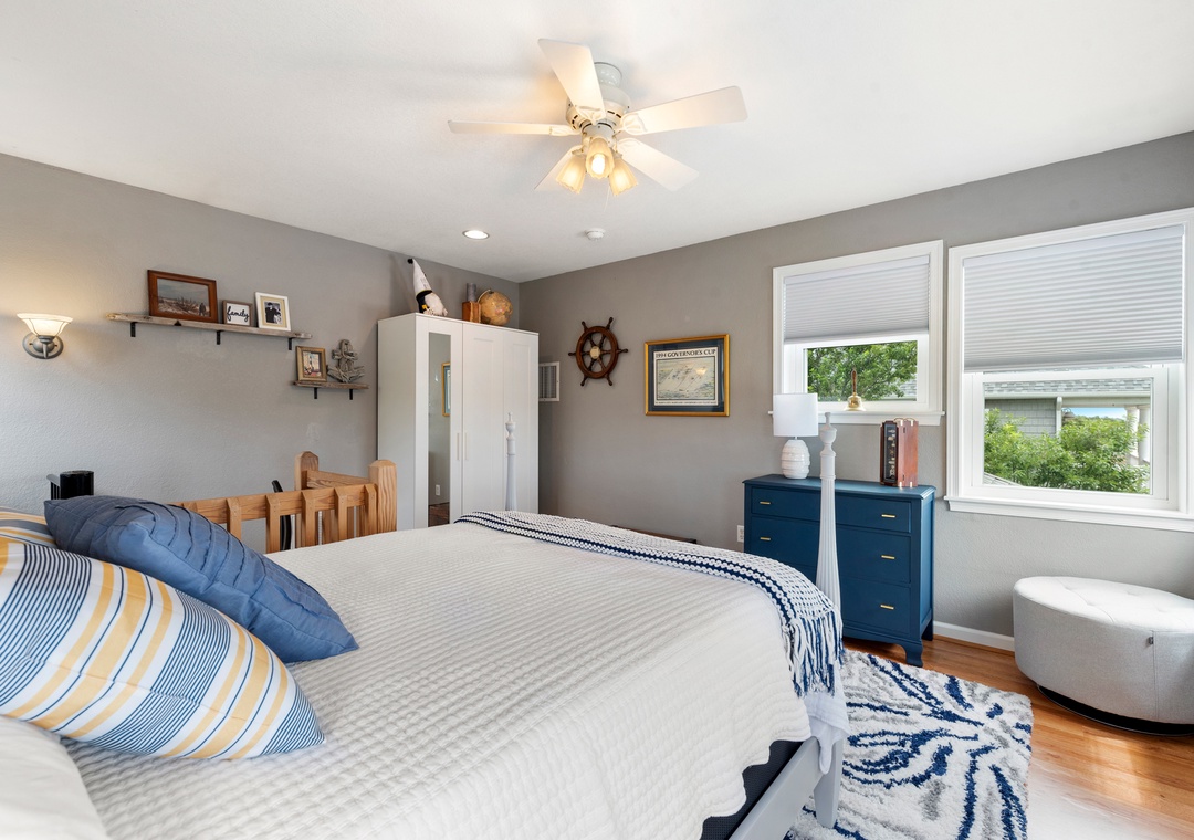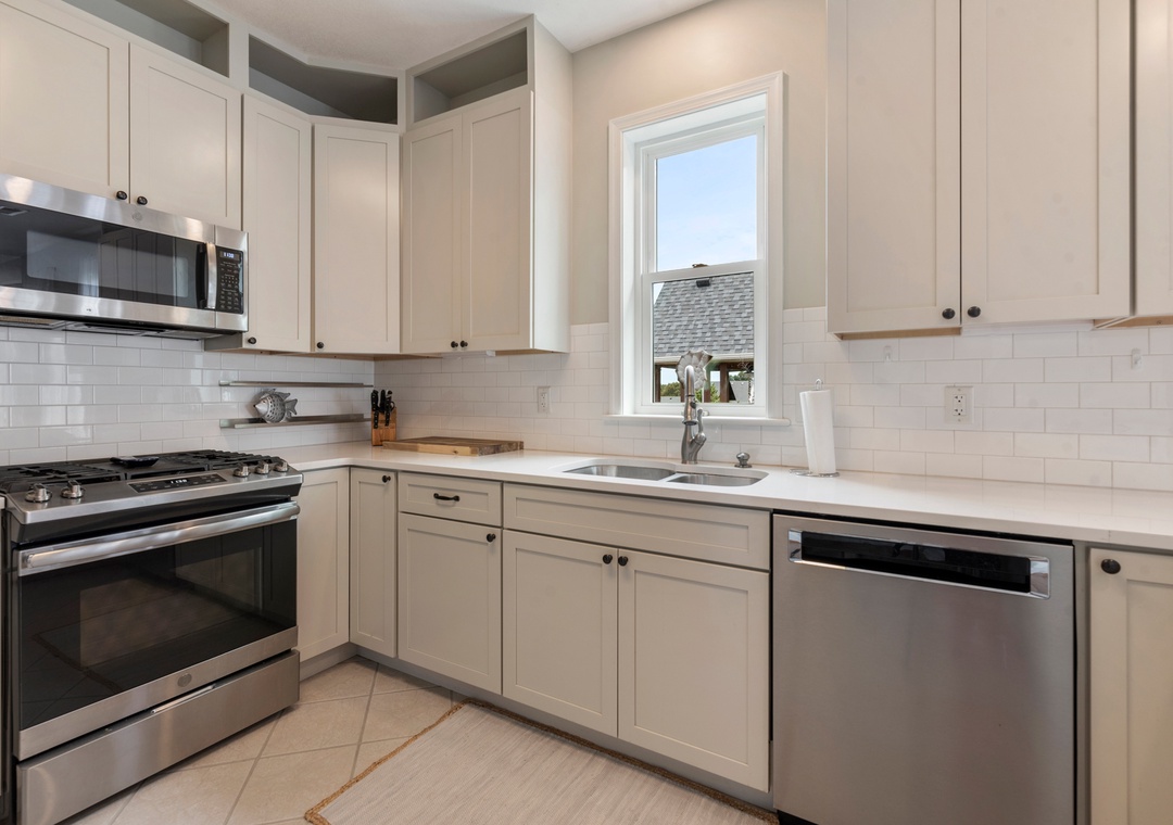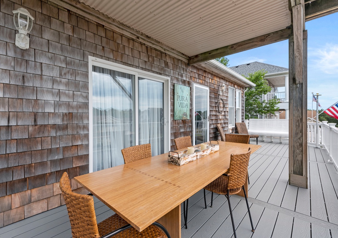 From the spiral staircase and French doors to the unique layout and bonus spaces, Pura Vida delivers ALL the character that you don't always see in your average beach house. The charming backyard is a thoughtfully landscaped paradise, surrounded by mature vegetation for plenty of privacy. A well-maintained grass lawn is perfect for kids and yard games. Recently remodeled, the kitchen boasts stainless steel appliances and gorgeous quartz countertops. The chef in the family will appreciate the five-burner gas range and the main level's open-concept layout, where they can still socialize even while preparing meals. After a day of fun in the sun, retreat to the newly updated primary suite that includes a private bath with jetted tub. It also features a cozy nook with daybed - the perfect spot for reading, catching up with work or an afternoon nap. Upstairs, the ship's watch provides an alternative sleeping option along with access to an expansive sun deck with views of the sound.