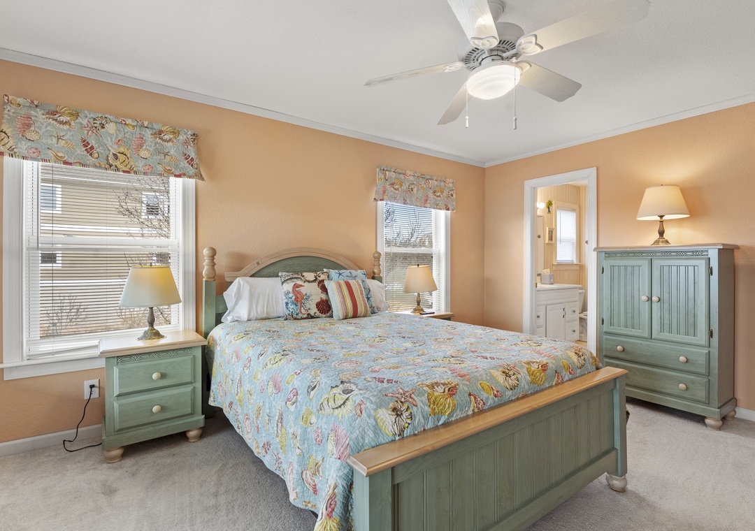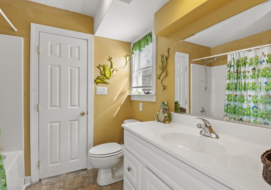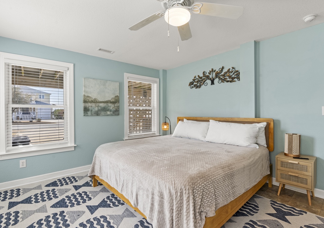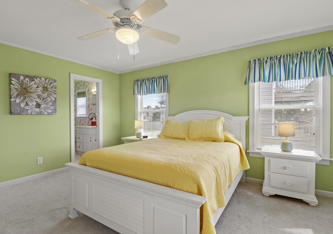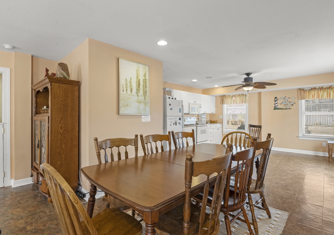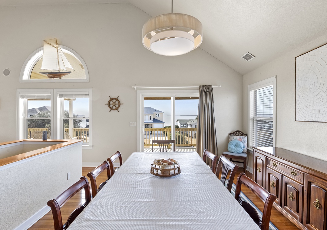 Start the fun on the ground level, where a king bedroom offers easy access to a shared jack‑and‑jill bath and a freshly renovated rec room that’s ready for friendly competition. A 60" TV, mini‑games, billiards, air hockey, and more set the stage for laughter-filled nights, while seating for eight makes it a great hangout space. Step outside to enjoy the pool and hot tub, rinse off in the outdoor shower, and soak up that laid‑back Outer Banks vibe.