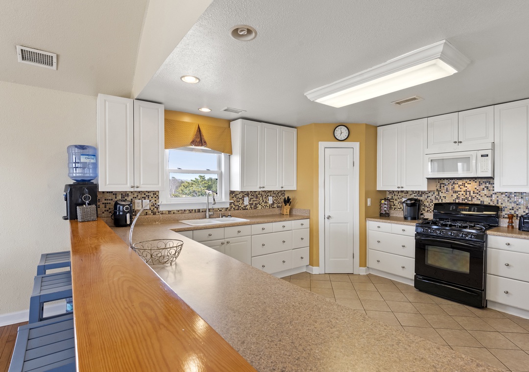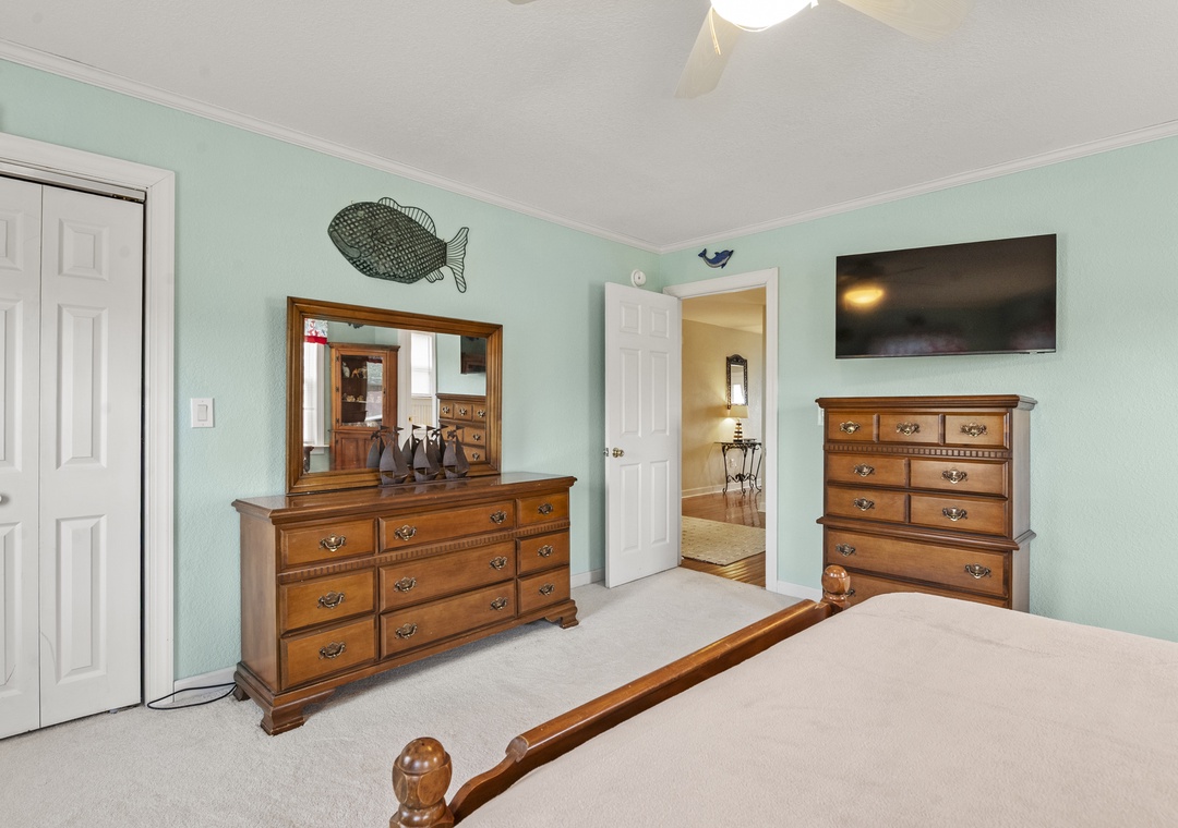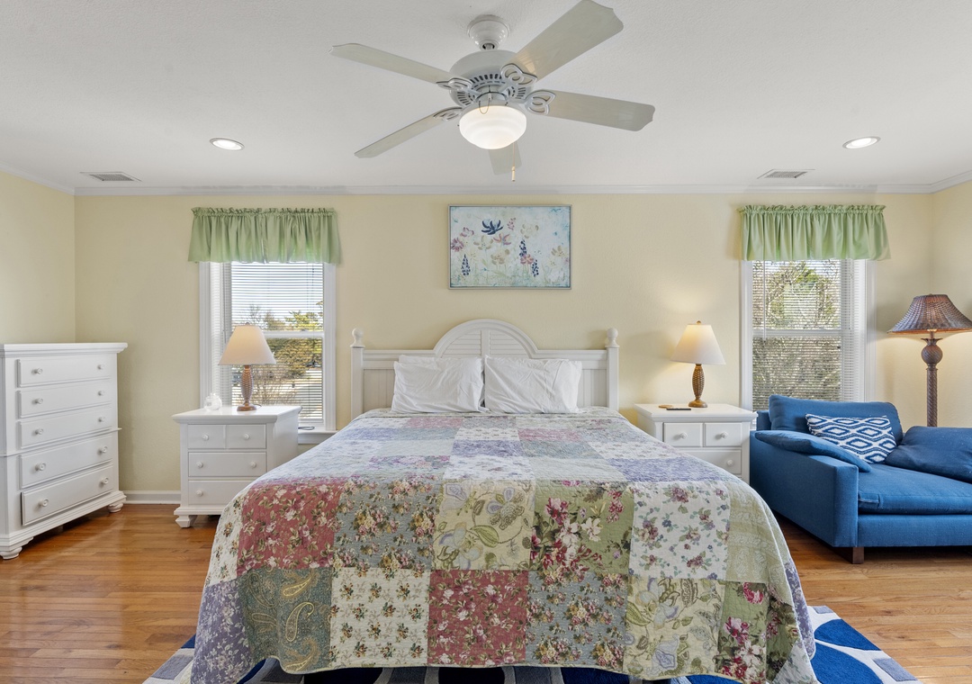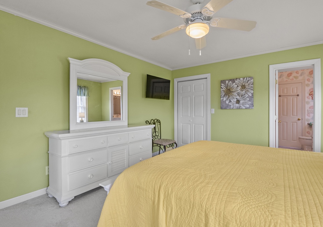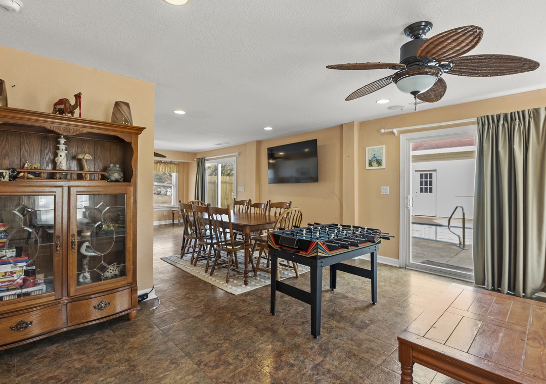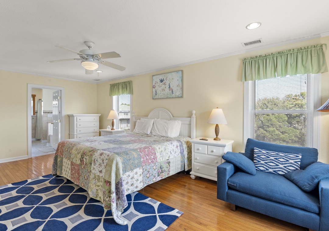 Start the fun on the ground level, where a king bedroom offers easy access to a shared jack‑and‑jill bath and a freshly renovated rec room that’s ready for friendly competition. A 60" TV, mini‑games, billiards, air hockey, and more set the stage for laughter-filled nights, while seating for eight makes it a great hangout space. Step outside to enjoy the pool and hot tub, rinse off in the outdoor shower, and soak up that laid‑back Outer Banks vibe.