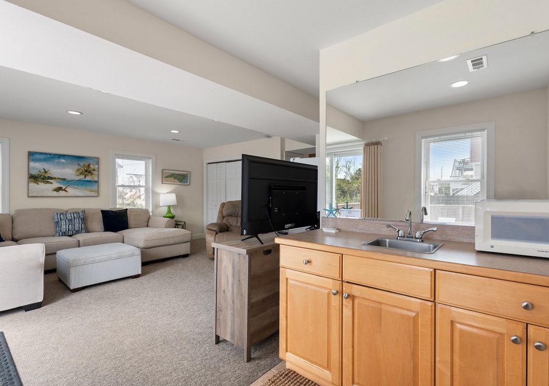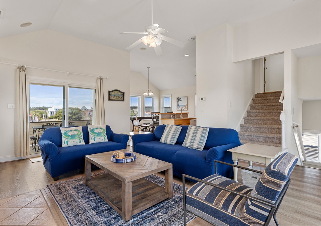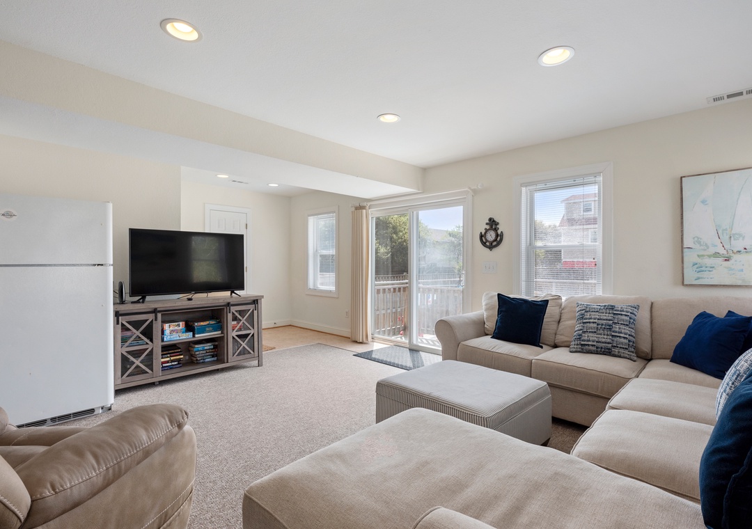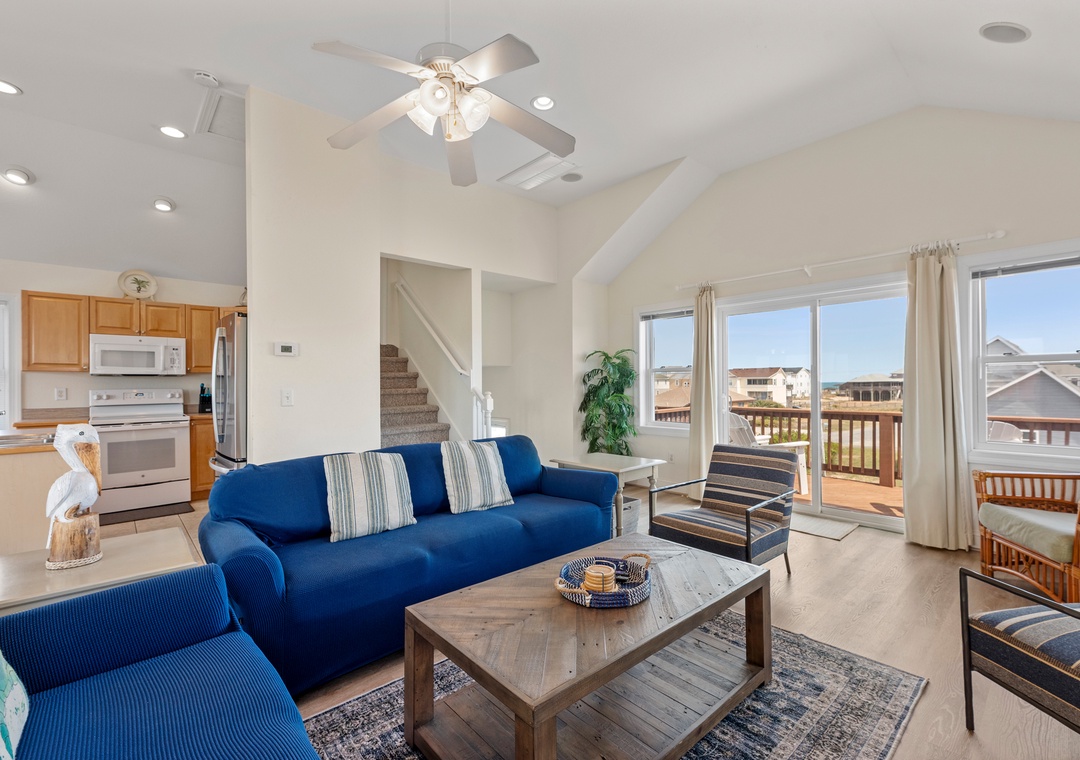 The top level opens to a great room, dining area, kitchen and powder room that will allow your family to gather together and enjoy the ocean air opening to a furnished, spacious sun deck. The ocean views are beautiful from the living room deck with a cup of coffee!