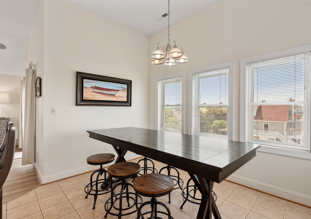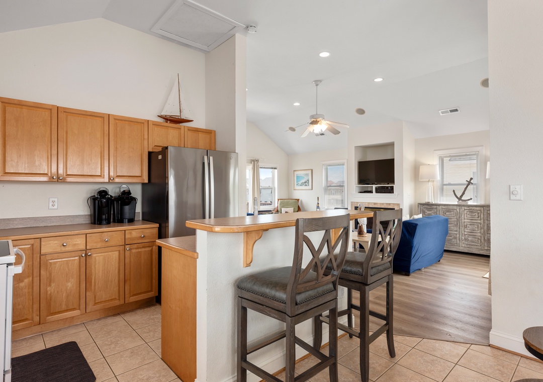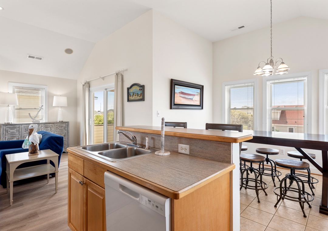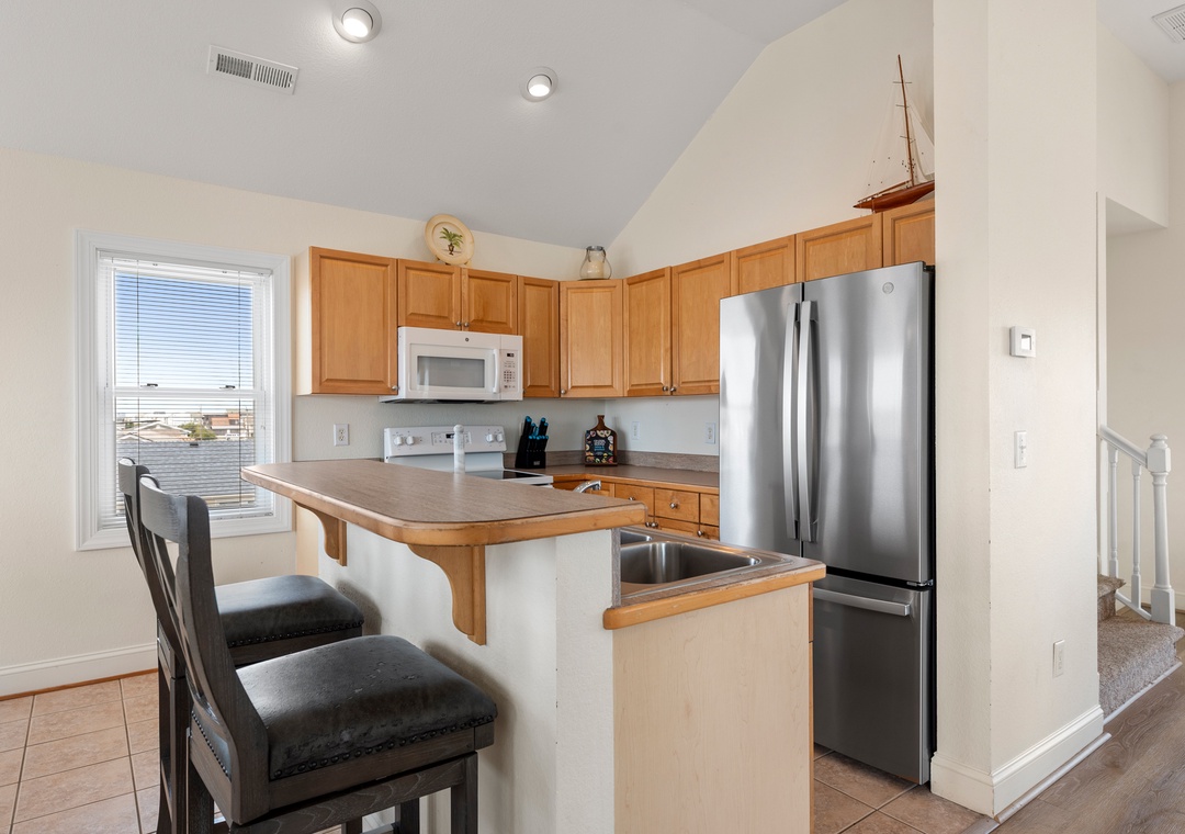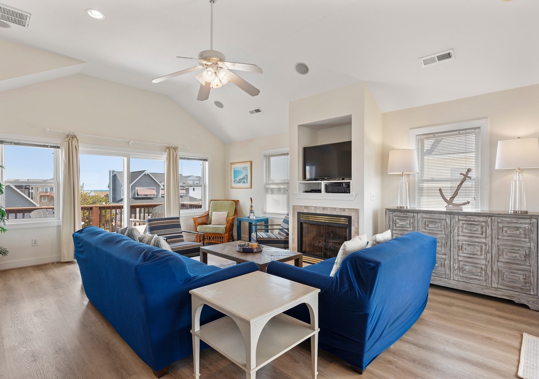The top level opens to a great room, dining area, kitchen and powder room that will allow your family to gather together and enjoy the ocean air opening to a furnished, spacious sun deck. The ocean views are beautiful from the living room deck with a cup of coffee!
