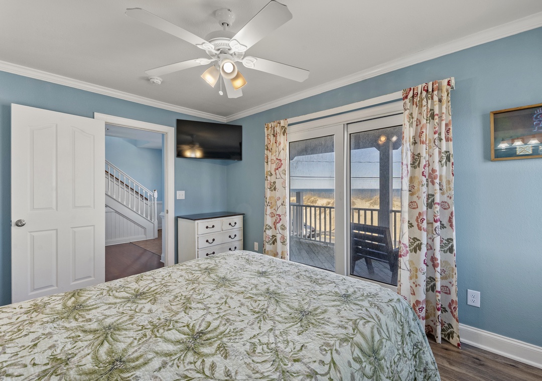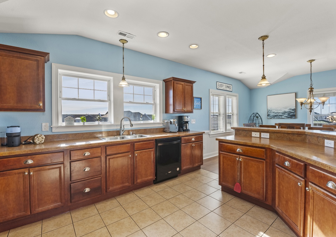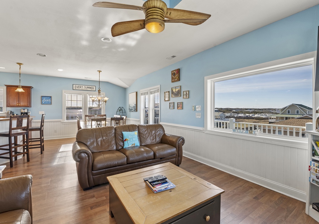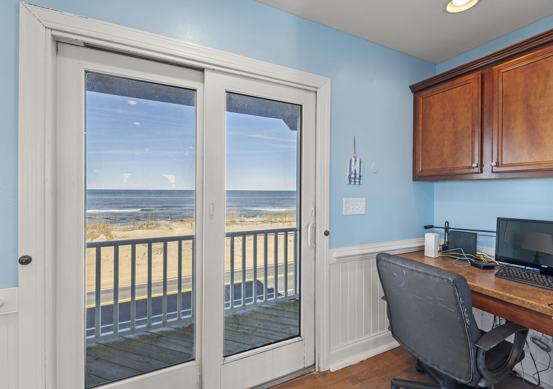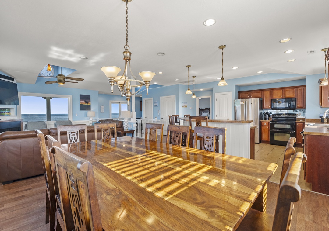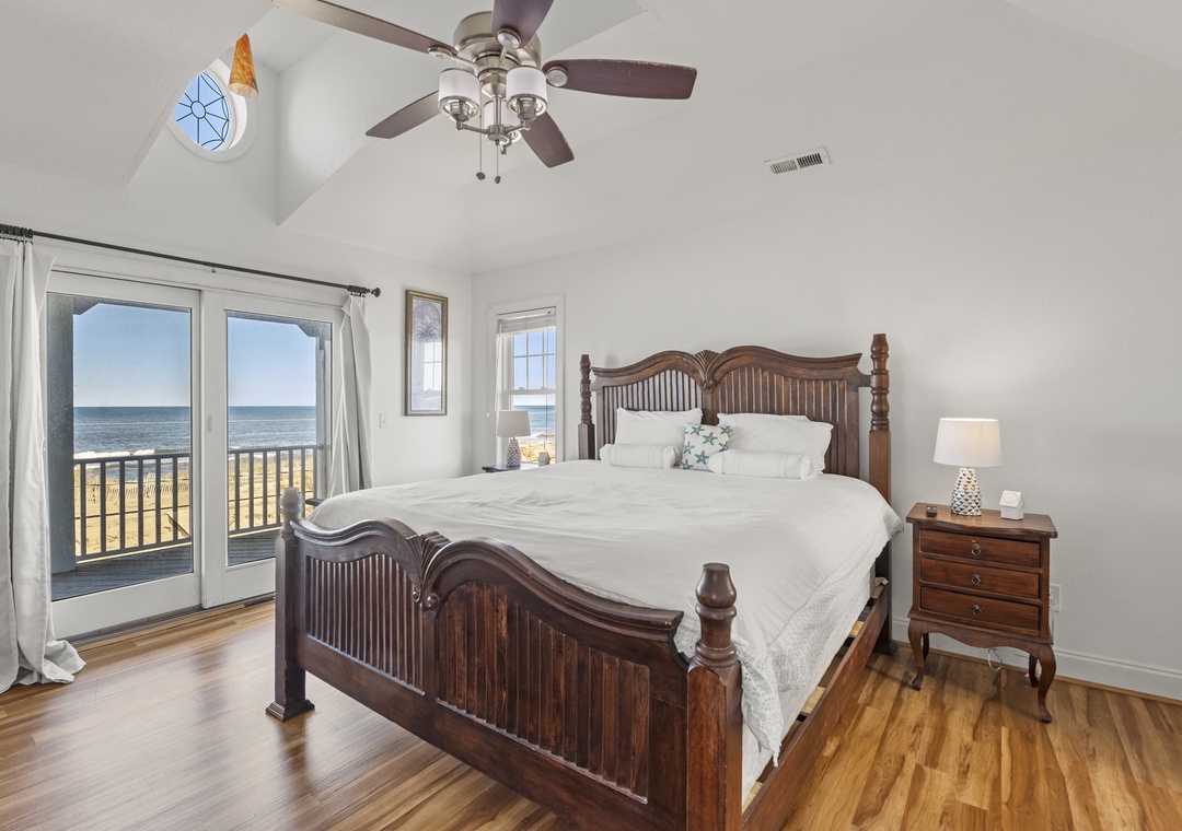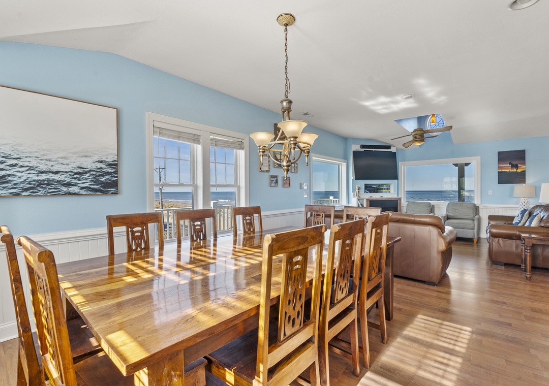 Inside, the delights continue with surprising ways to relax and have fun with family and friends. On the ground floor, choose between a game of pool in the rec room or a movie night in the media room with a 75" screen and tiered, theater-style seating. Open up the windows in the sports bar to serve drinks tiki-style. It's equipped with a commercial fridge, ice maker, sink and even a keg cooler for grabbing a snack or a cold one to enjoy by the pool. An elevator is ideal for guests with mobility issues and makes getting luggage and groceries to the upper levels quick and easy. Gaze upon the breathtaking beauty of the Atlantic Ocean like never before with three levels of wrap-around decks, offering some of the most mesmerizing views found on the Outer Banks.