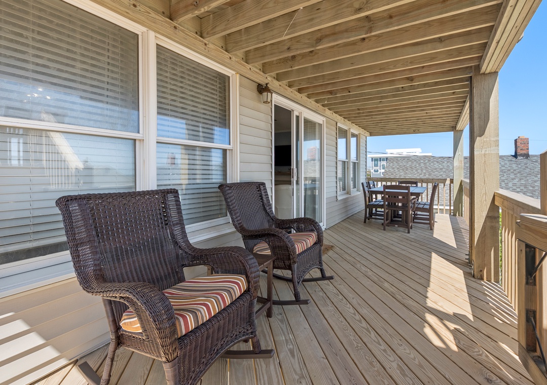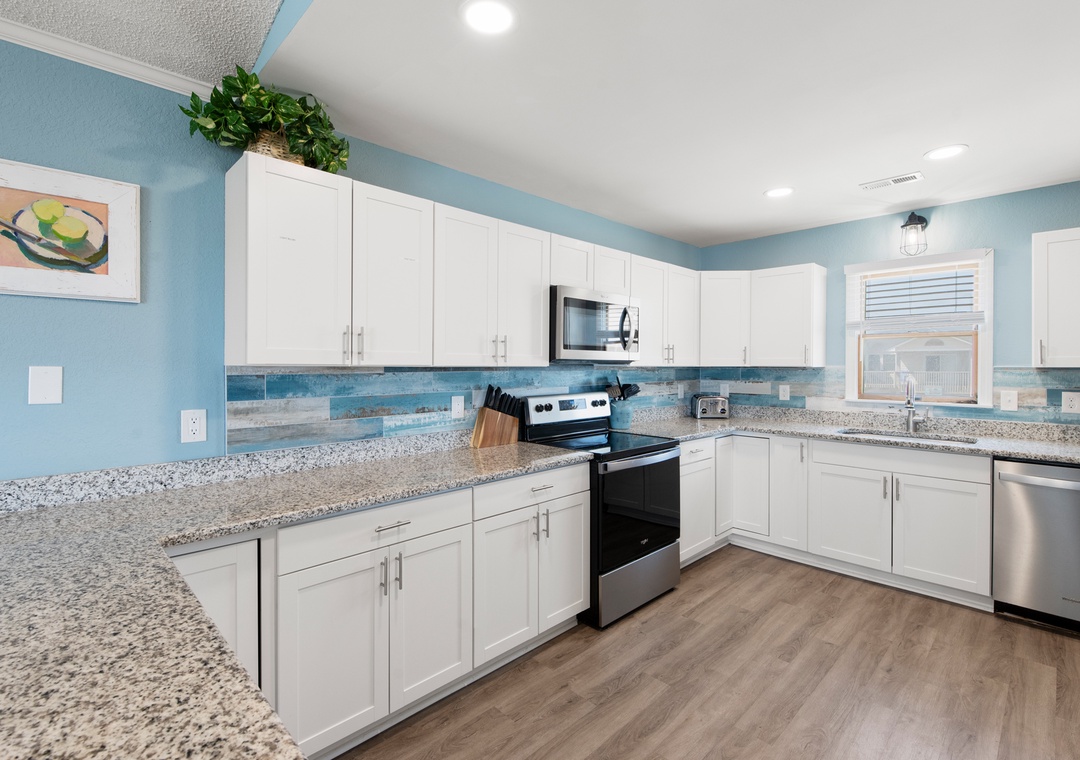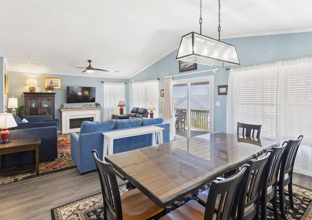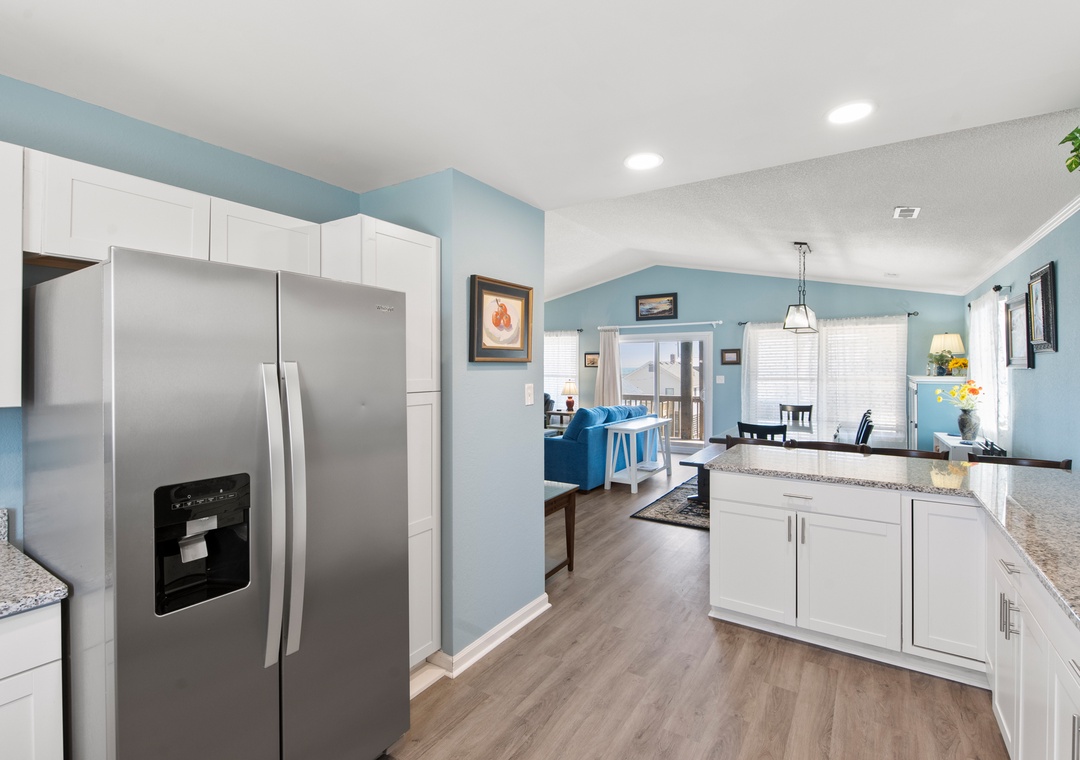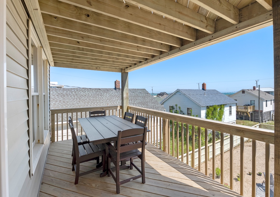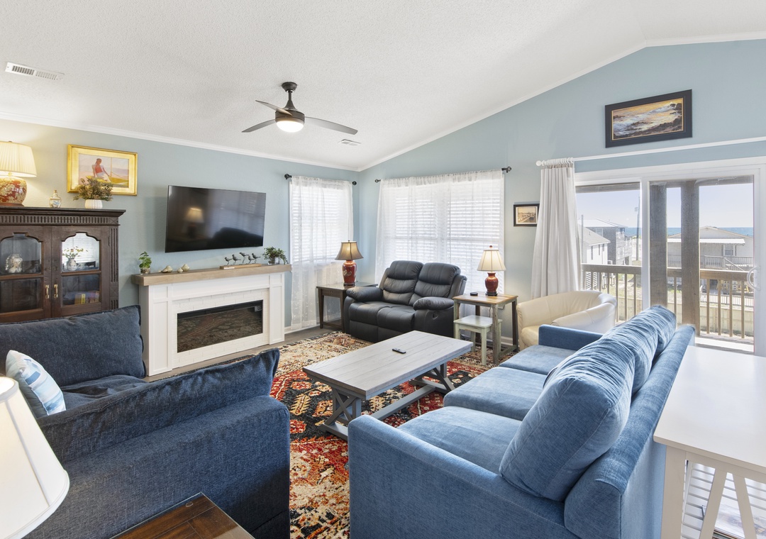After a day of sun, sand and surf, come home and admire the ocean views from both the rooftop deck and top-level great room. An open-concept layout encourages quality time spent together even when preparing meals in the kitchen. The chef in the family will appreciate the spacious layout, quartz countertops and stainless steel appliances. Serve dinner at the large dining table with seating for ten, or al fresco at the picnic table on the ocean-facing covered deck. Practical and beach-friendly LVP flooring runs throughout this dog-friendly home, ideal for sandy feet and paws returning from the beach. Check-in and check-out will be a breeze using the cargo lift to send luggage and groceries to and from the upper levels. Two electric fireplaces are available year round with or without heat (please unplug when not in use).