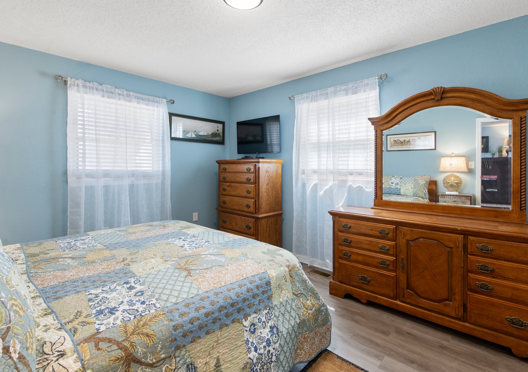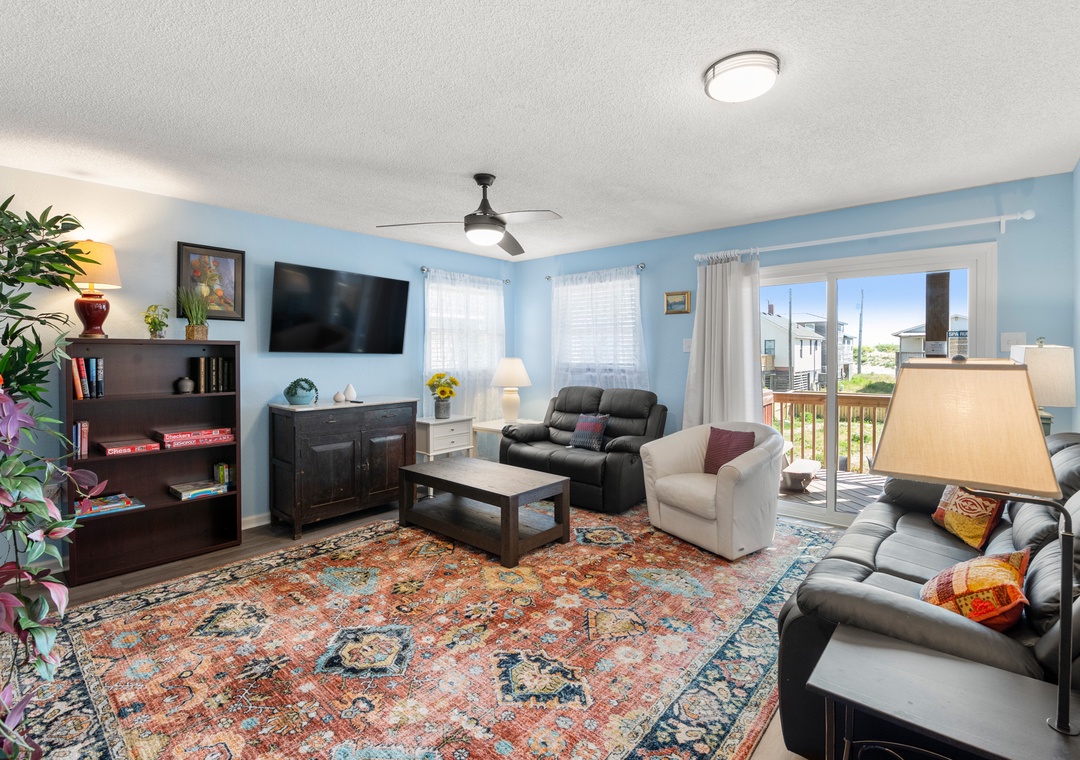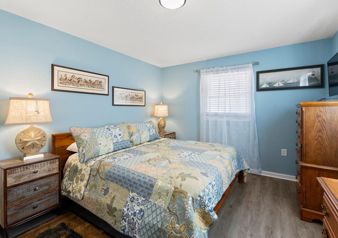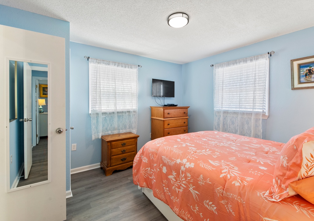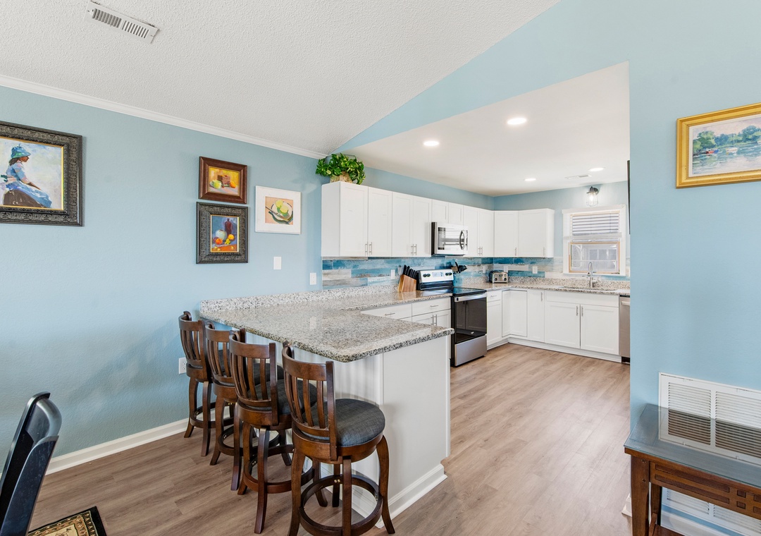 My family and I stayed at Swallow’s Nest in April and there was plenty of room for everyone, with four bedrooms and two gathering areas (one with many games and jigsaw puzzles and a card table and chairs tucked away) and another room with a pool table and foosball game. The house has lovely art work in every room, making the whole house feel warm and welcoming. When you first open the fence into the carport, the atmosphere is cheerful with rugs and outdoor seating, leading to the patio out back with more seating, a picnic table and the large fenced in back yard. Perfect for grilling outdoors. Our dog loved it, but we had to be careful to keep him out of the new bushes. The walk to the beach was short and easy and the beach really wide with no houses sitting on the dunes to interrupt the view.- Reviewed On: 6/25/2024