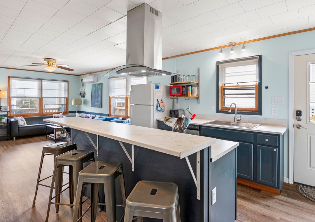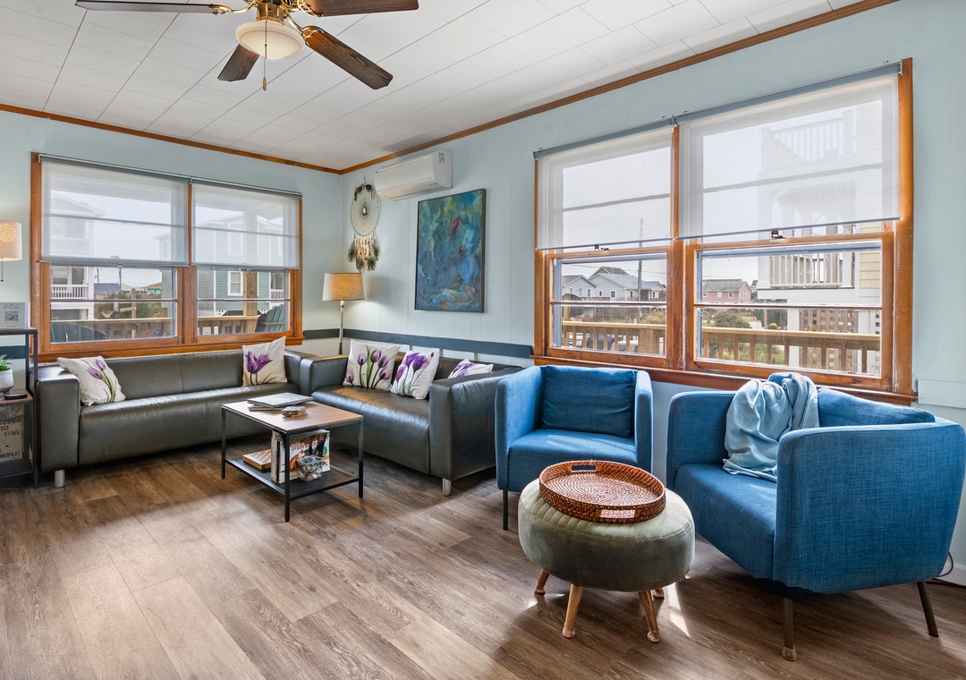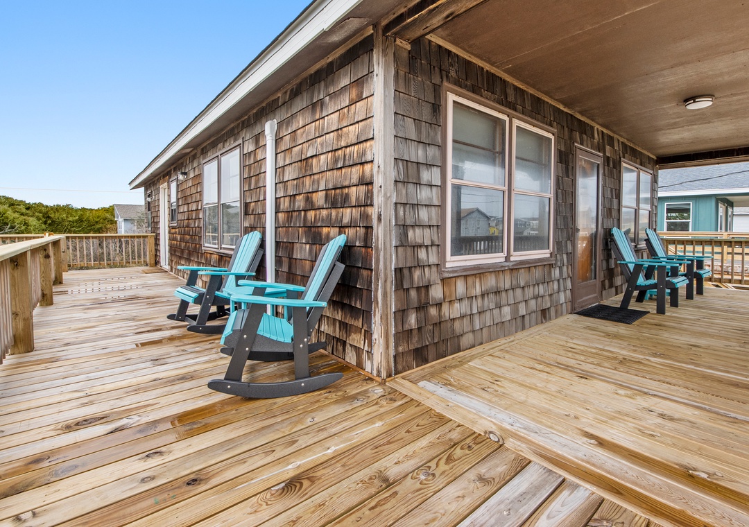 An Outer Banks vacation that's all about "Dune Nada" is time well spent! This 4 bedroom home is located oceanside in Kitty Hawk, just a short walk to the public beach access at Balchen Street. A classic beach box design with modern updates, this newly renovated home offers a bright and airy open-concept living and kitchen area. The two queen bedrooms share the first full bathroom, while the other two bedrooms are perfect for kids and share the second full bathroom. After a day at the beach, relax in the rocking chairs on the covered front porch and enjoy the ocean breezes.