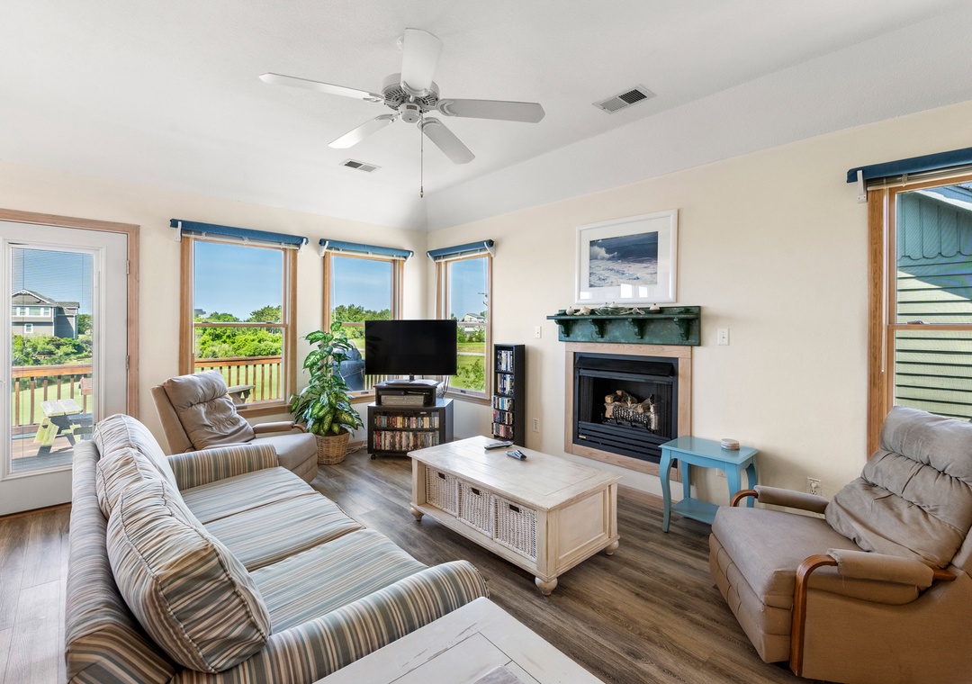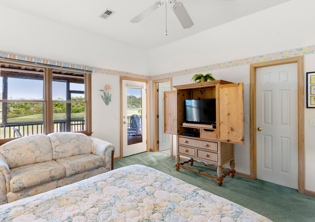 This comfortable Outer Banks home has everything you need for a memorable vacation, including multiple TVs, a DVD player for movie nights, a grill for outdoor cooking, a screened porch for relaxing afternoons, and an outdoor shower to rinse off after a fun day at the beach. With beautiful golf course views and an array of family-friendly amenities, this Nags Head gem is the ideal place for your next getaway!