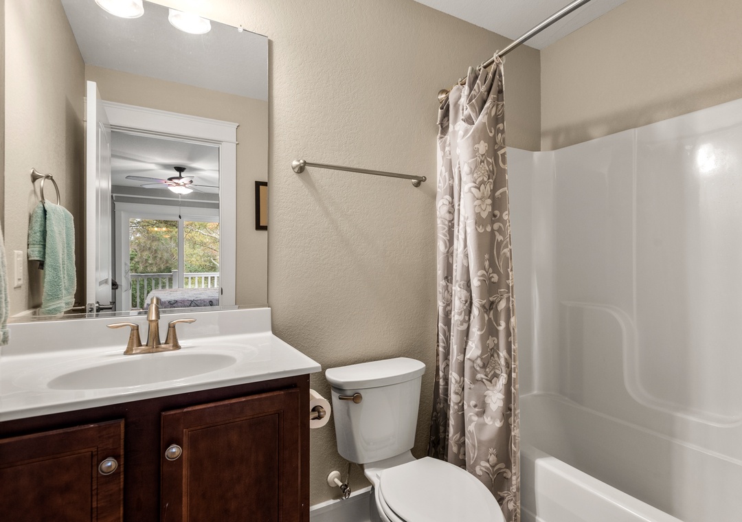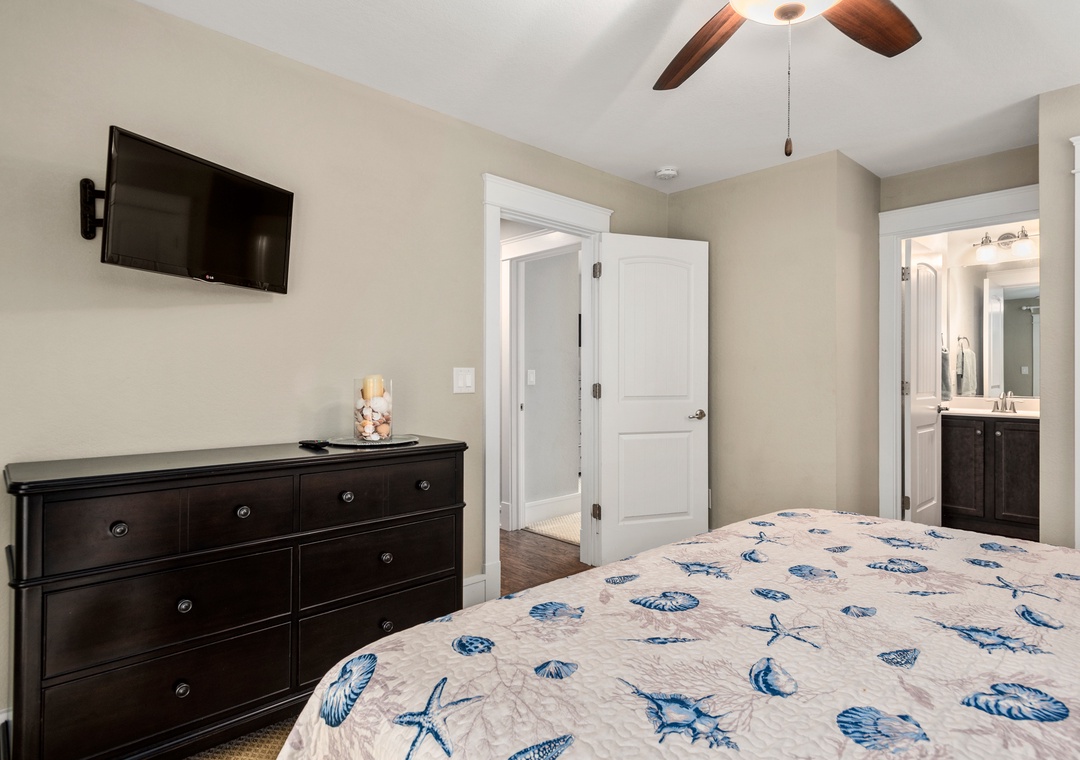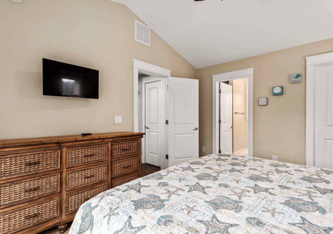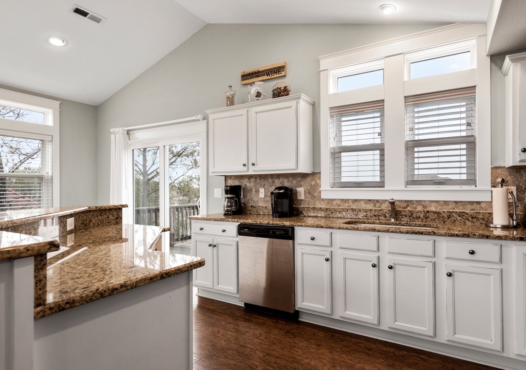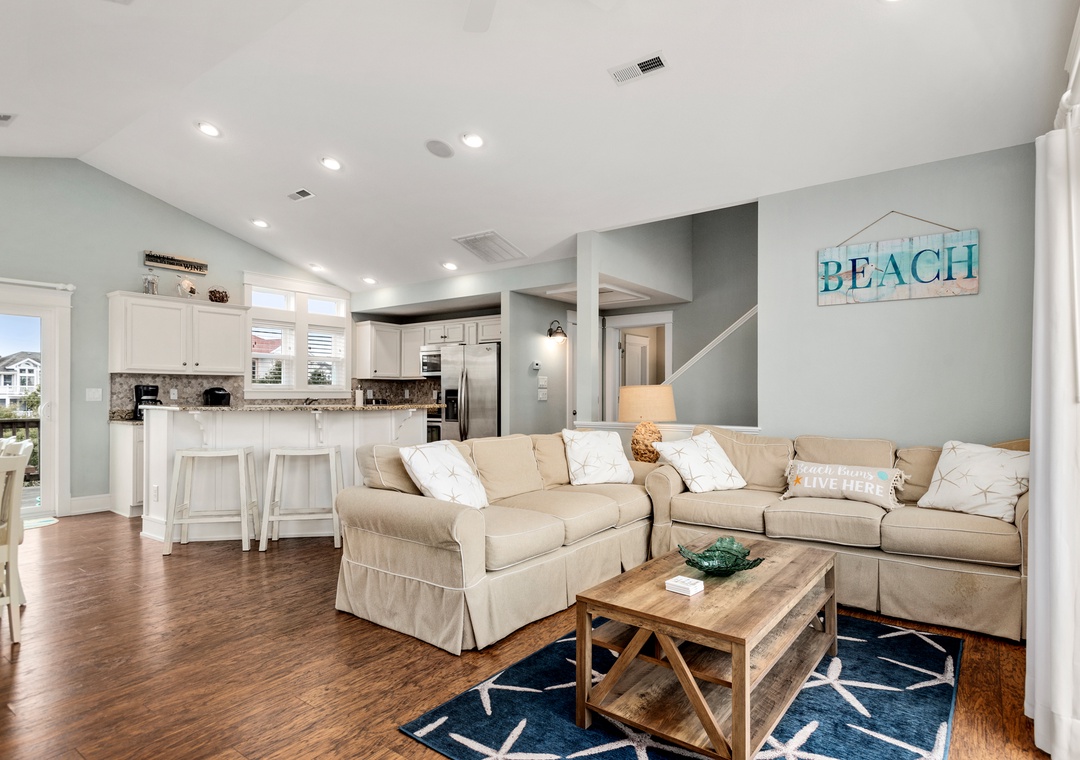 Anchor Bar is where you can find the ultimate in tranquility and vacation serenity. The top-level great room with cathedral ceilings offers comfortable furnishings and sets a tone of relaxation which immediately makes you feel at home. Prepare meals in the upscale kitchen with stainless steel appliances, granite countertops and an eat-in bar. The loft can double as an office space, equipped with a desk for keeping up with work or school remotely. Downstairs, the game room features a shuffleboard table for hours of indoor fun. Take advantage of the wet bar for convenient drinks and snacks without having to go upstairs. Just outside you'll find all the outdoor amenities your family will need for spending quality time together. Let the kids splash in the pool while you take a relaxing soak in the hot tub. There's even a Tiki bar, making this backyard paradise feel like your own private resort. The pool can be heated certain times of the year, ideal for off-season getaways.