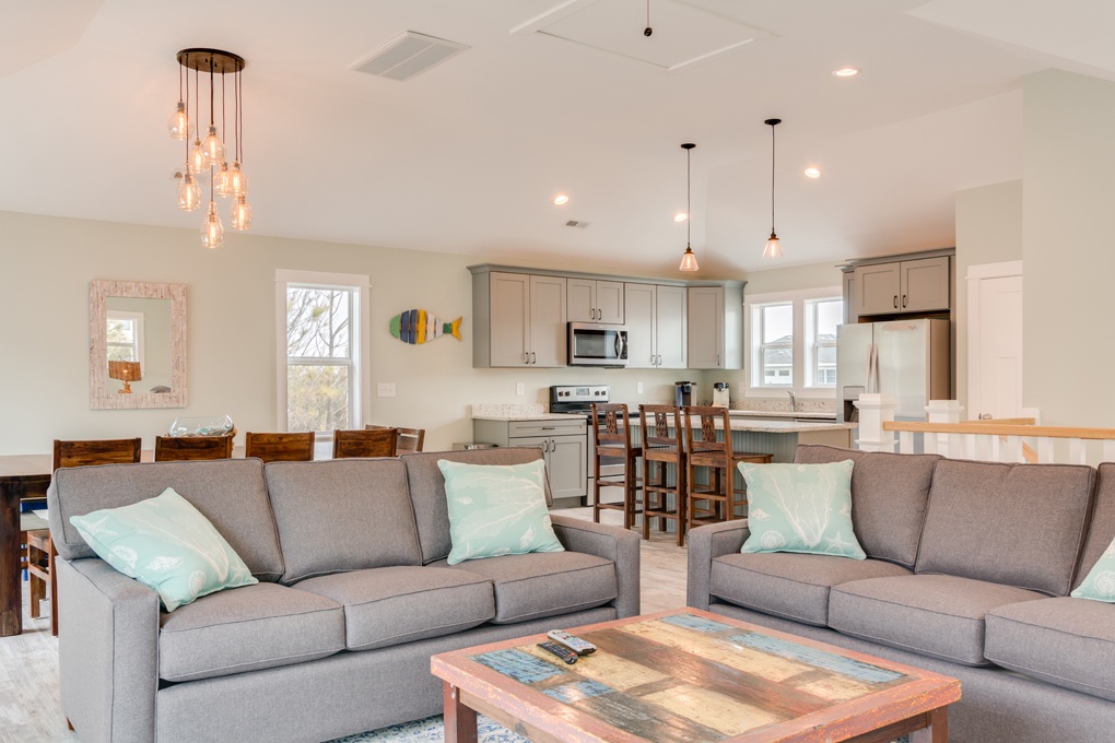 It's Good To Be Back at this beautiful brand new, professionally decorated home located on the soundside in Monteray Shores. You can relax after a fun day at the beach in your own private pool and hot tub. Spacious decks on the back mid and top level overlooking the pool area offer a great place to read a book, enjoy your morning coffee or evening beverages.