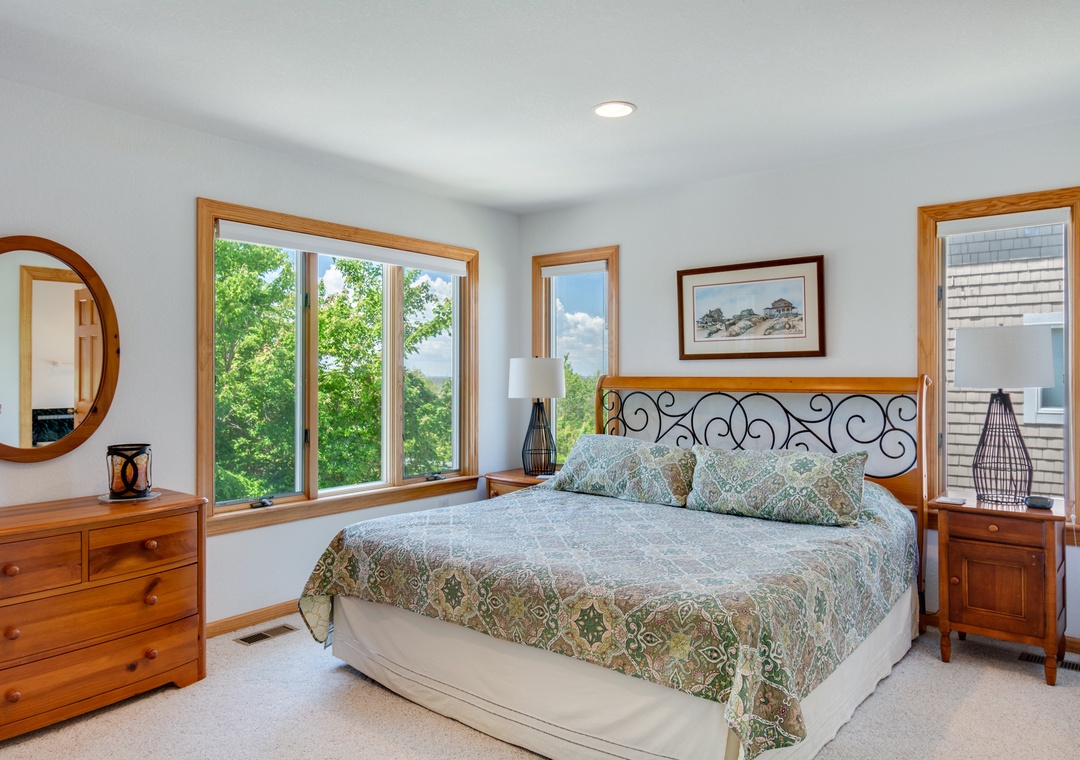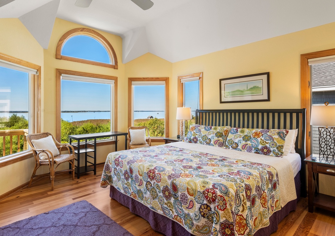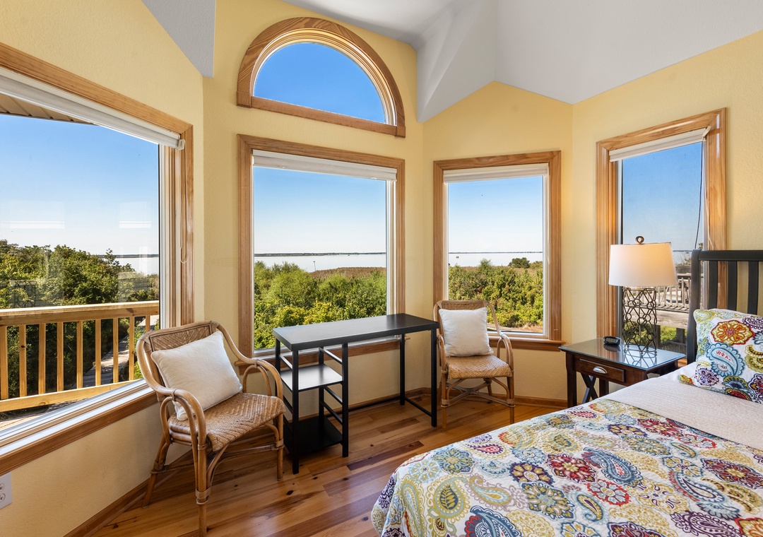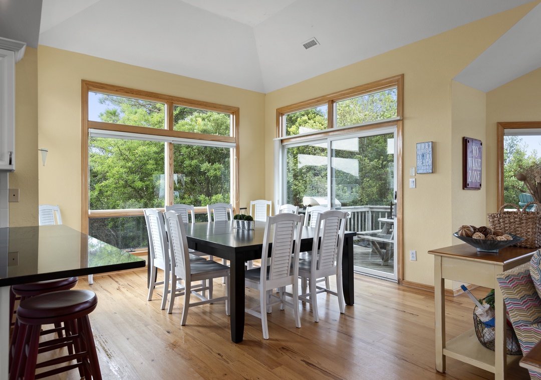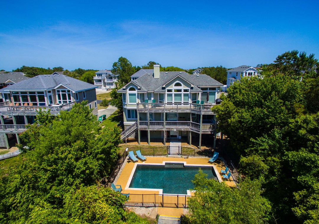 On the sound-front in Monteray Shores you'll find Harvest Moon, a gorgeous 5 bedroom home offering breathtaking views of the Currituck Sound. Featuring a private saltwater pool, hot tub, and all you need for a great beach vacation. The private pier, surrounded by mature vegetation, allows for easy fast access to the water making this pet-friendly home perfect for the water enthusiast. So, don't forget your kayak and paddleboard! The pier offers a peaceful place to unwind with your favorite drink as you take in the beautiful sunset and tranquility after a long day of vacation fun.