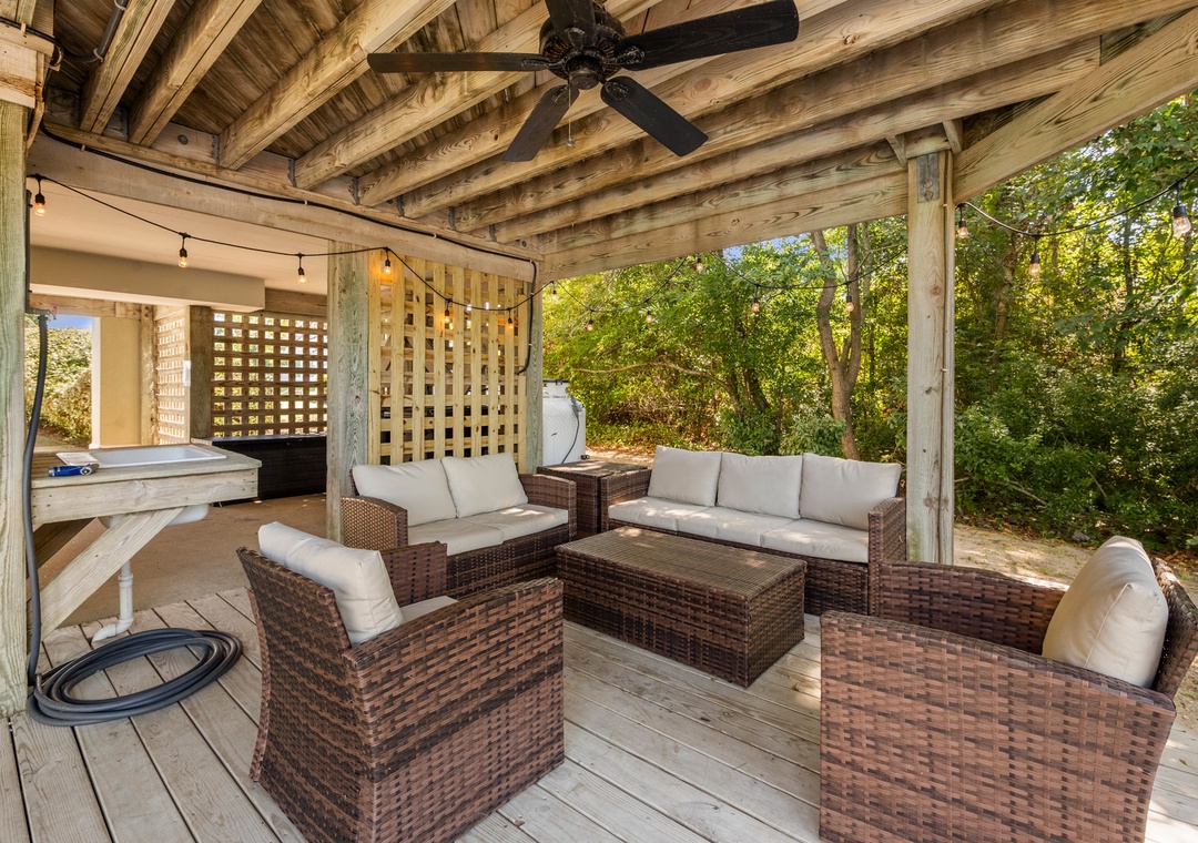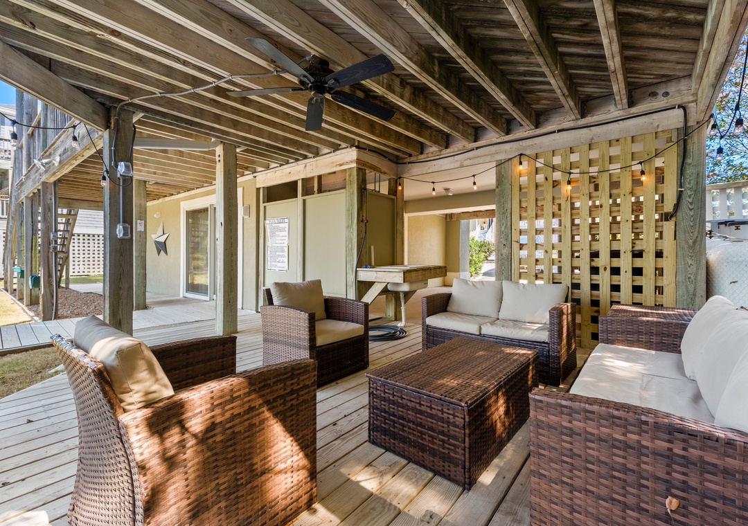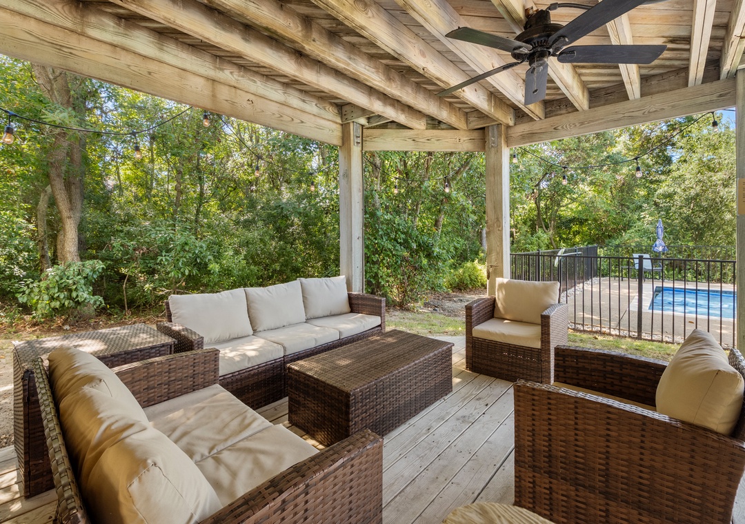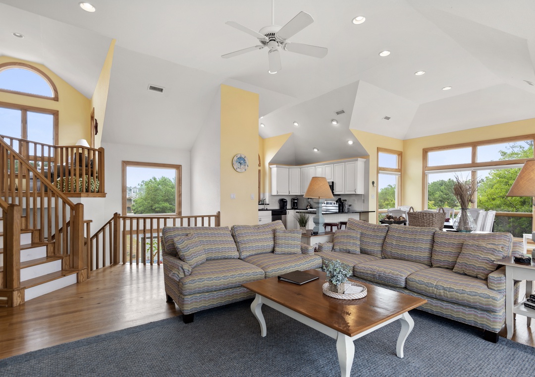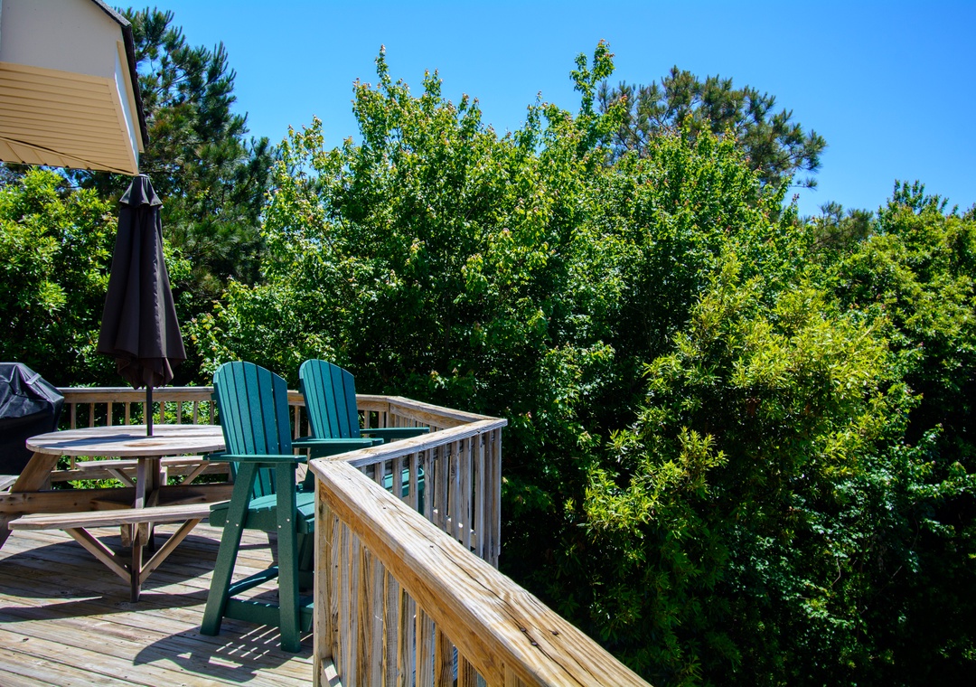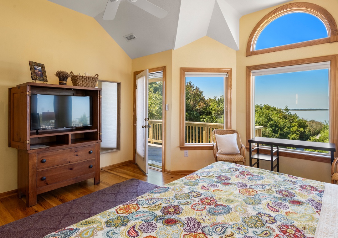 On the sound-front in Monteray Shores you'll find Harvest Moon, a gorgeous 5 bedroom home offering breathtaking views of the Currituck Sound. Featuring a private saltwater pool, hot tub, and all you need for a great beach vacation. The private pier, surrounded by mature vegetation, allows for easy fast access to the water making this pet-friendly home perfect for the water enthusiast. So, don't forget your kayak and paddleboard! The pier offers a peaceful place to unwind with your favorite drink as you take in the beautiful sunset and tranquility after a long day of vacation fun.
