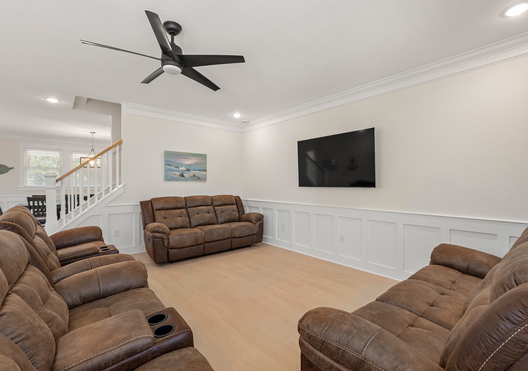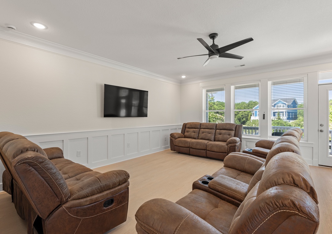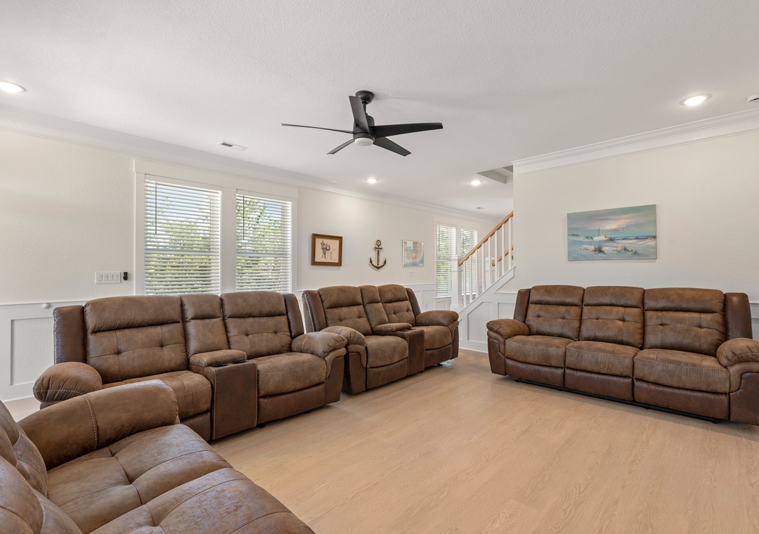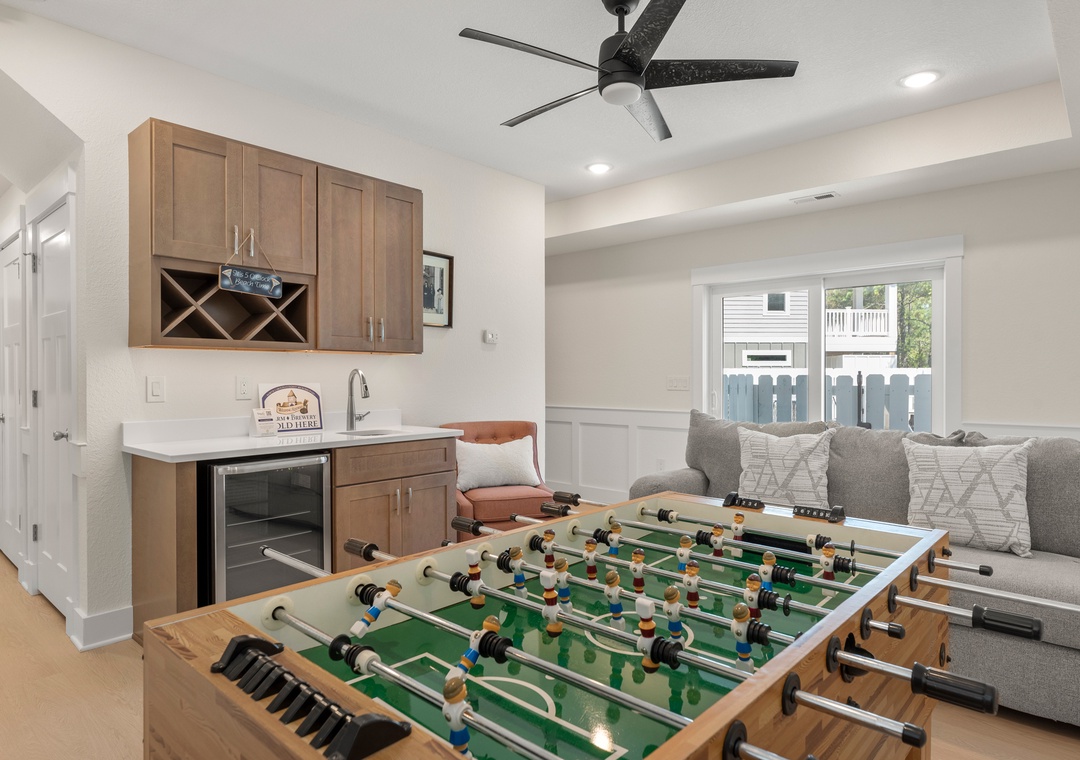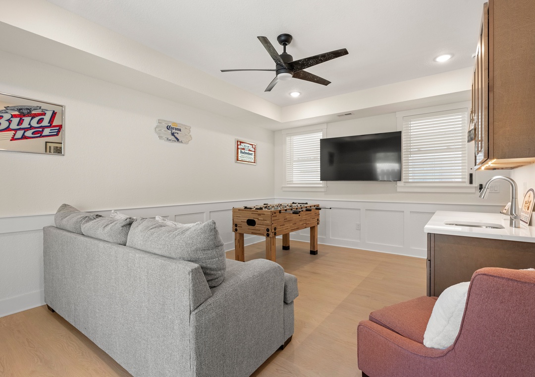 The game room and wet bar are designed for pure entertainment and fun. Whether you're challenging family members to a game of foosball or enjoying a refreshing drink, these spaces will quickly become your favorite spots in the house. You'll find yourself wanting to return time and time again to relive the joy and laughter shared here.