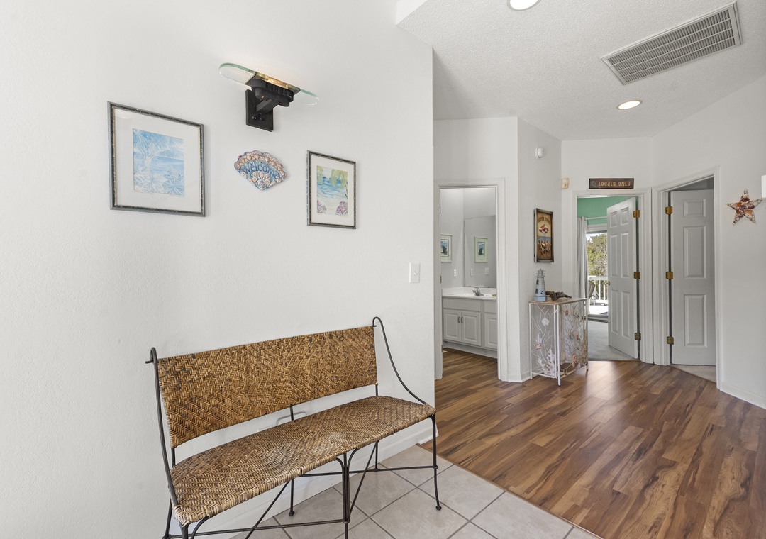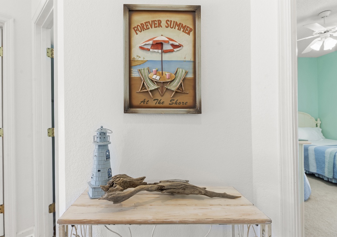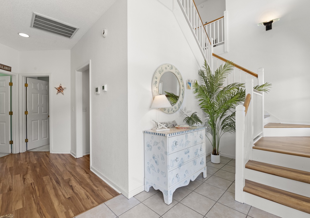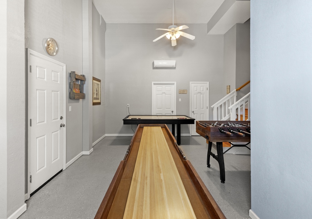 Downstairs, the entry level has also been updated with new flooring and now features a super cool game room that’s genuinely fun for the whole family. Challenge each other to air hockey, foosball, shuffleboard, or a game on the TV while you cool off between pool sessions or unwind after dinner—there’s space here for kids and adults to hang out together or spread out. Two king primary suites, plus additional double bedrooms and three and a half baths, give everyone comfortable sleeping options and privacy.