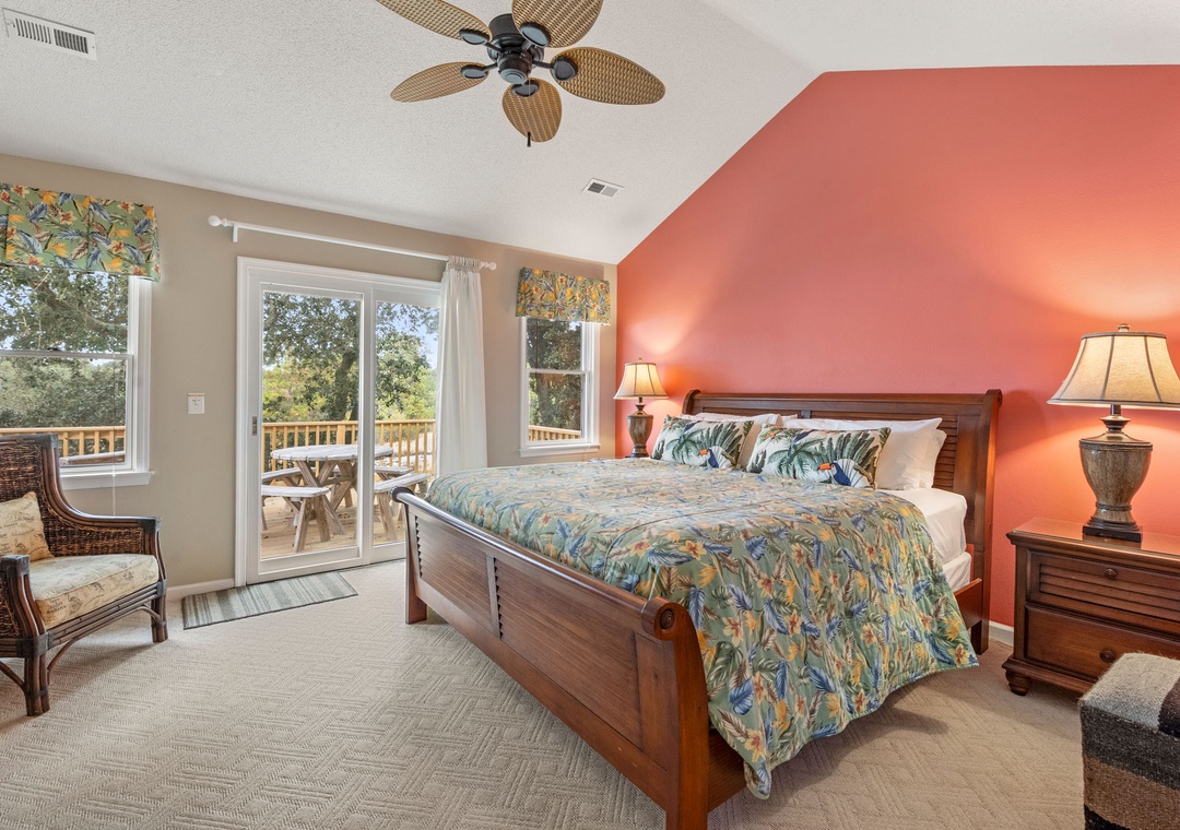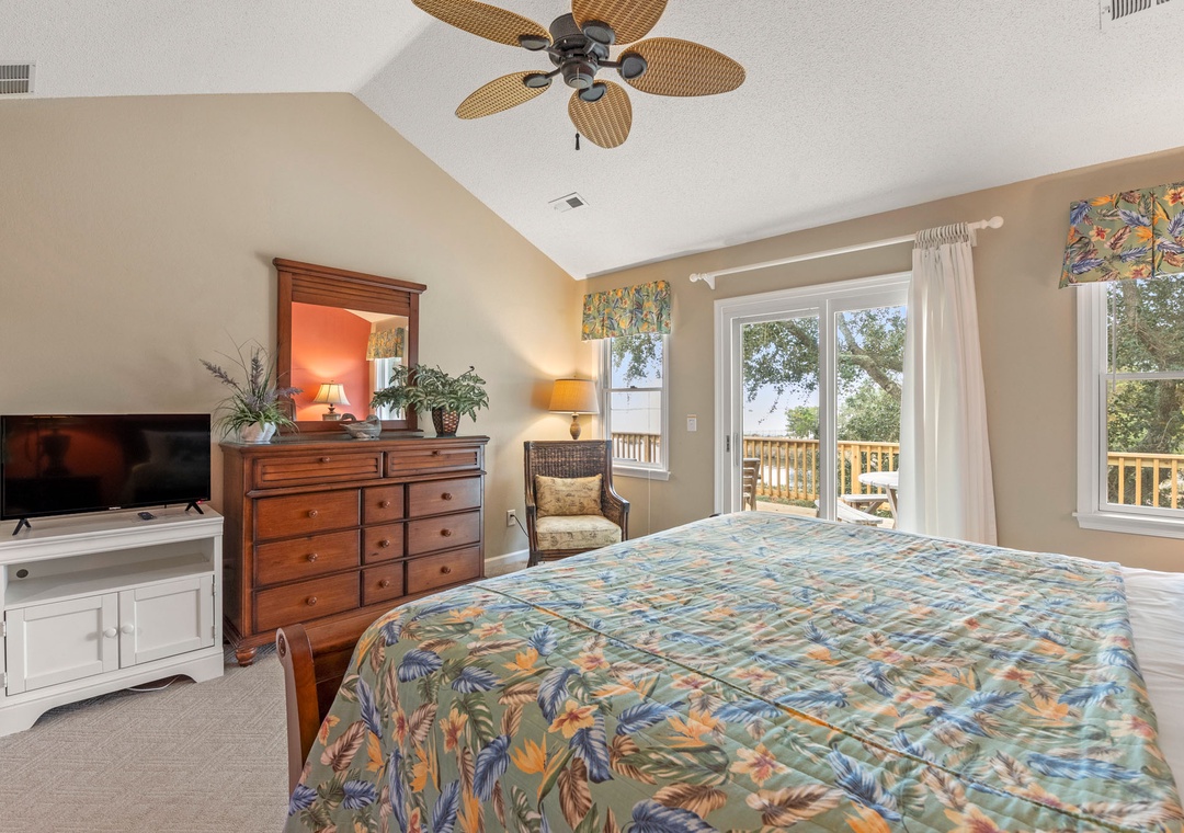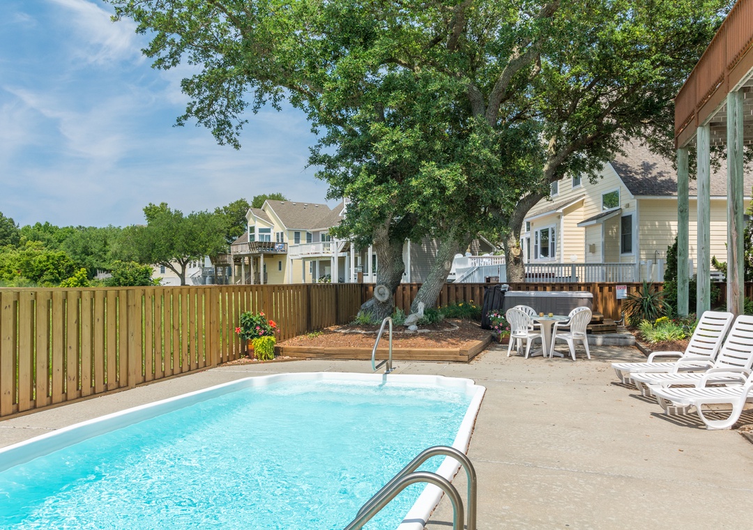 One of the highlights of Birdie is the spacious deck, providing a stunning vantage point to enjoy the breathtaking sunsets over the Currituck Sound. Whether you’re soaking in the hot tub surrounded by beautiful live oaks and landscaped gardens or relaxing by your own private pool, you’ll find plenty of opportunities to unwind and recharge.