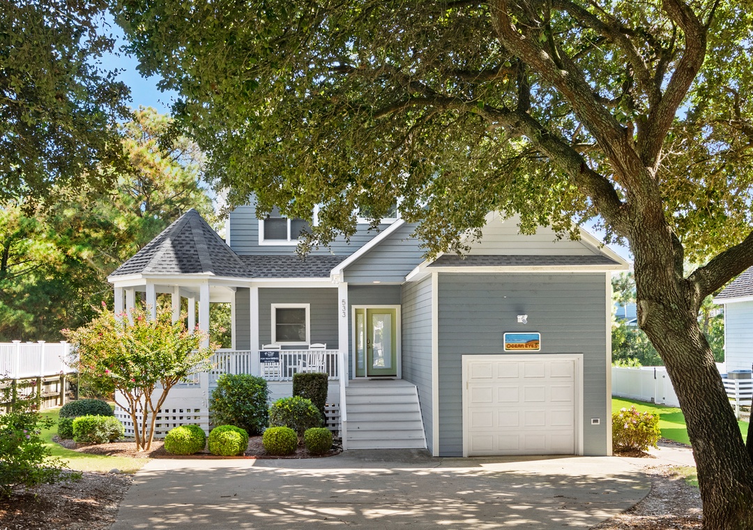 Look forward to reconnecting with family and friends when you reserve Ocean Eyes for your next Outer Banks vacation. This lovely home is located in the highly desired Magnolia Bay community of The Currituck Club. When you arrive, a wrap-around front porch with gazebo will welcome you with traditional southern charm. Step inside and relax in the tastefully furnished great room that boasts soaring, two-story ceilings, hardwood floors and an abundance of natural light. During the off-season, curl up in front of the gas fireplace for staying cozy on cooler Spring and Fall evenings. The screened porch serves as an outdoor extension of the living area and provides access to the backyard where you'll find a barefoot-friendly lawn, patio with grilling area and even a bubbly hot tub. When you're not dining out, prepare meals at the house in the well-equipped kitchen with bar seating that overlooks the dining area. All three bedrooms are conveniently located together on the top level. The spacious primary suite features a king bed, vaulted ceilings, and a private bath with dual vanities and a jetted tub.
