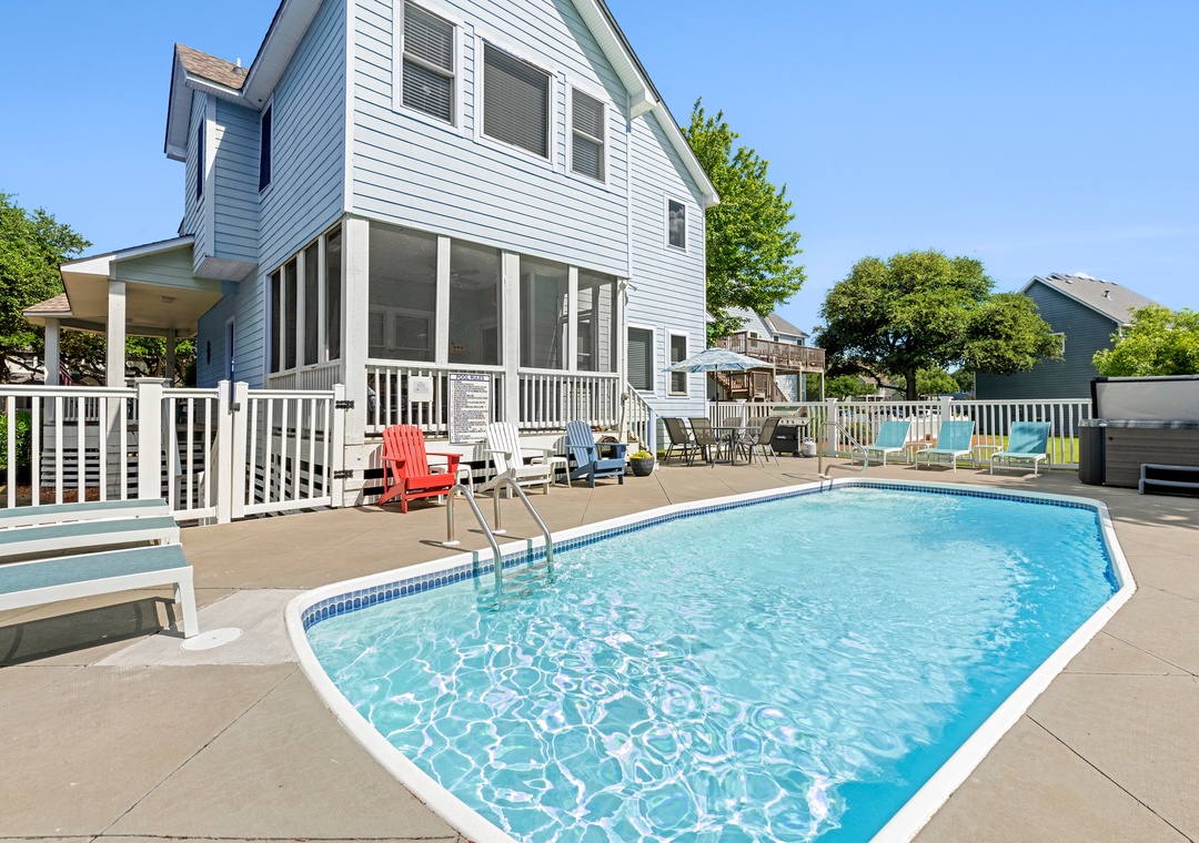 Update for 2025: A brand new hot tub will be installed in January! Once Upon A Tide is a tastefully furnished and well-maintained home located in the Magnolia Bay neighborhood of The Currituck Club - a great neighborhood for outdoor activities, walking, running and riding bikes. After a day at the beach, come home and relax on the screened-in porch, take a dip in the private pool, or soak away your worries in the bubbly hot tub. Fabulous restaurants, shopping and a variety of family-friendly activities are nearby.