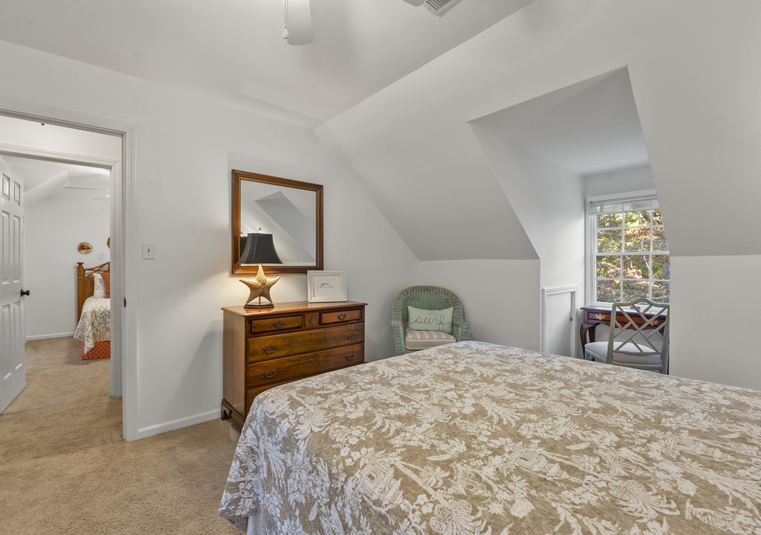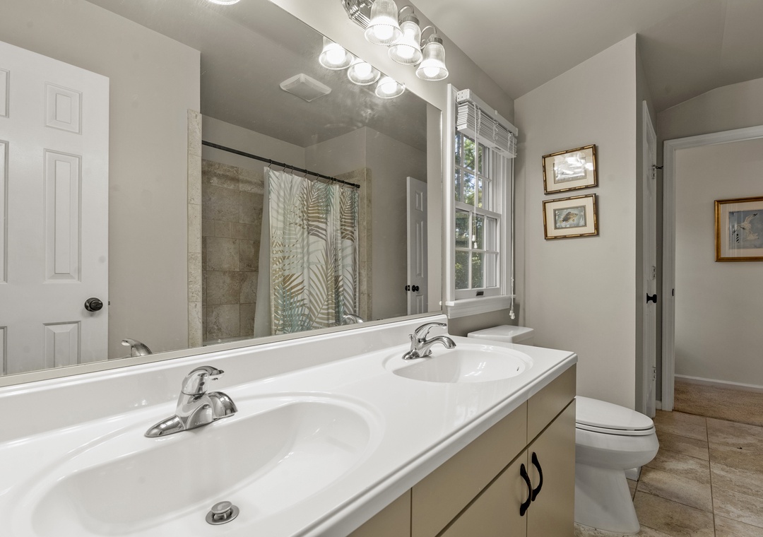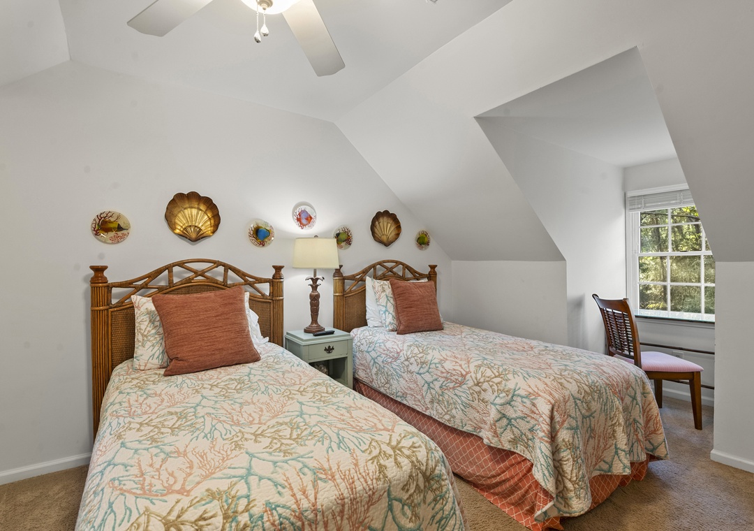 Head upstairs and you’ll find two more inviting bedrooms connected by a jack-and-jill bathroom. One room offers a queen bed for sweet slumber, while the other has two twin beds perfect for kids or friends. Every space is designed to make you feel right at home while still giving you that “vacation mode” feeling.