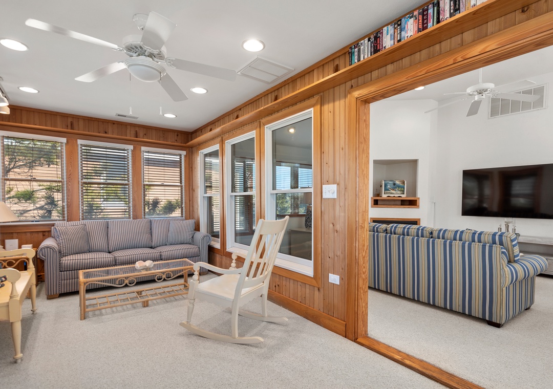TVs, DVD players, WiFi, rec room w/pool table, large sun-room, outside shower, grill.