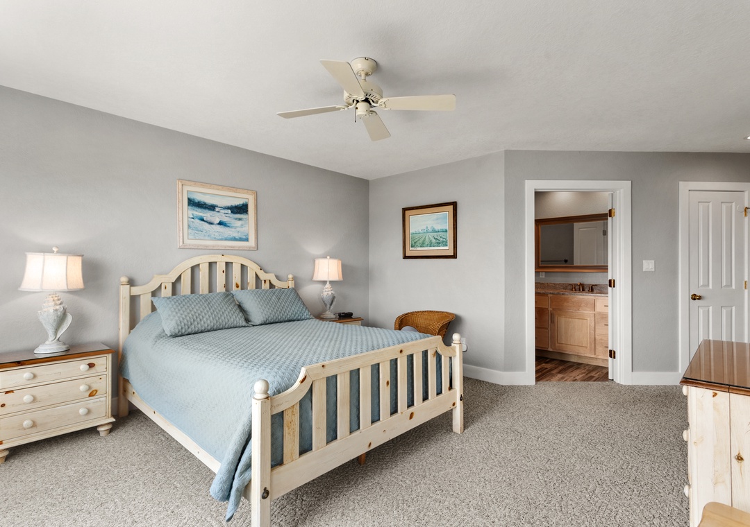 After a day of exploring or golfing, unwind in the hot tub on the deck while soaking in the stunning surroundings. The home is equipped with modern amenities, including TVs, a DVD player, a gas fireplace for cozy evenings, a grill for your outdoor cooking needs, and an outside shower to rinse off after a day at the beach.