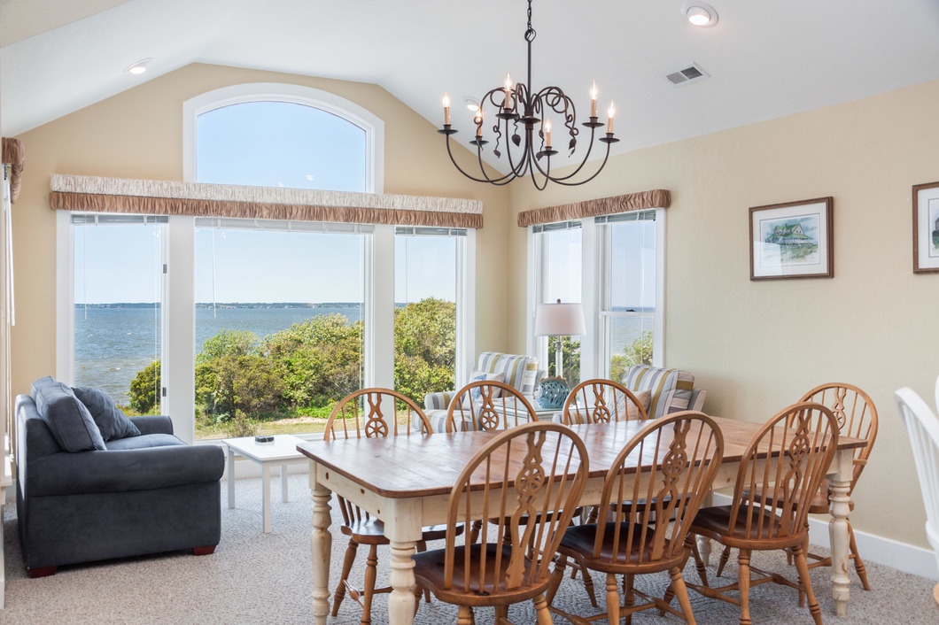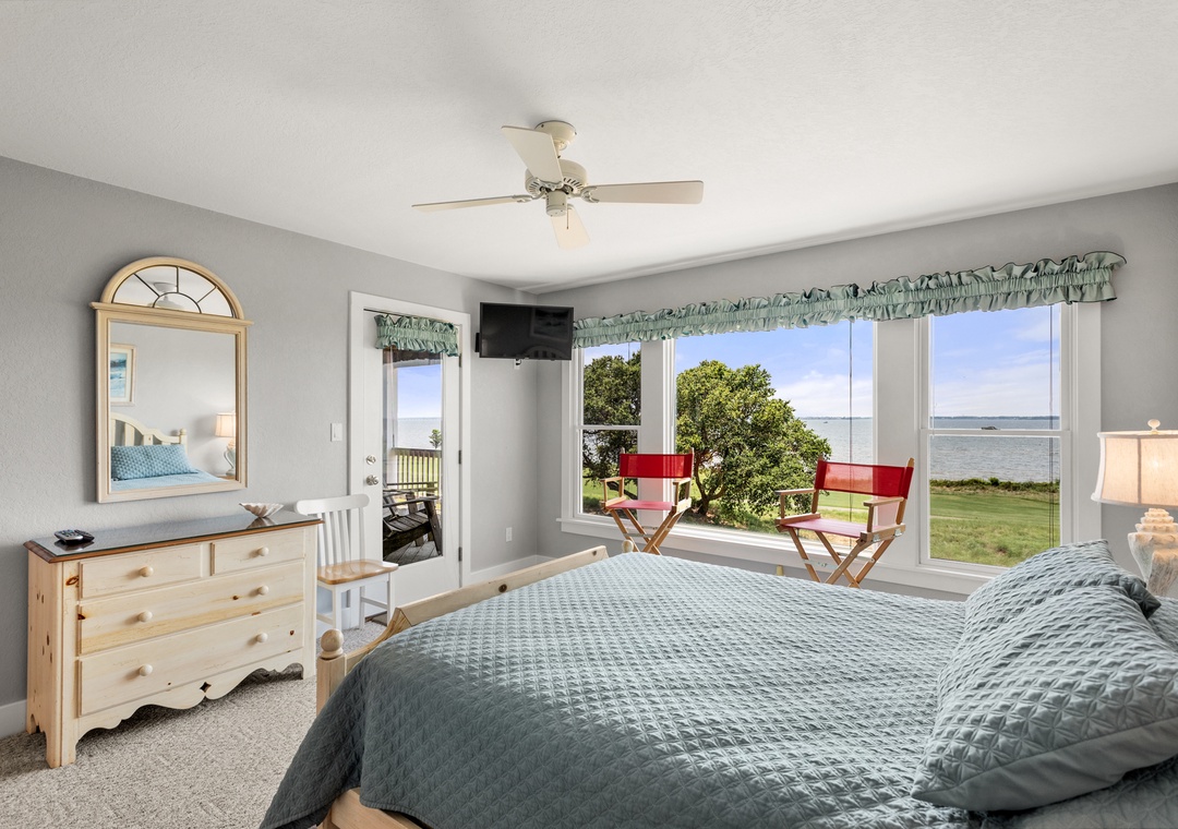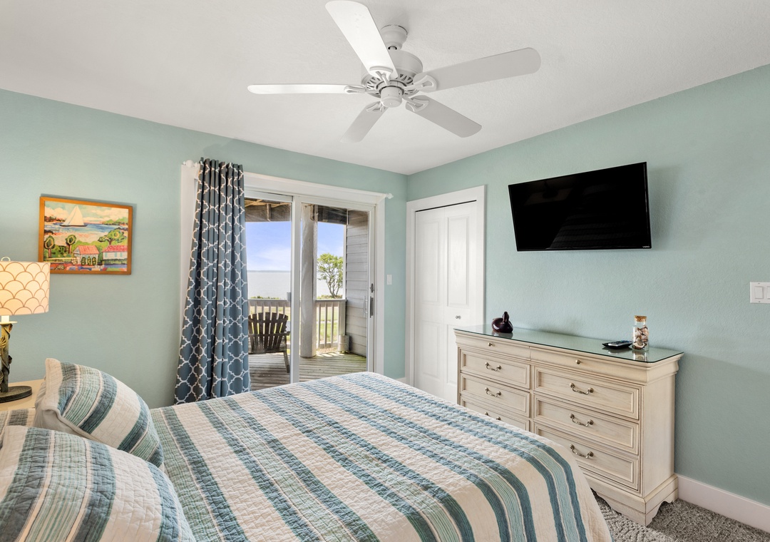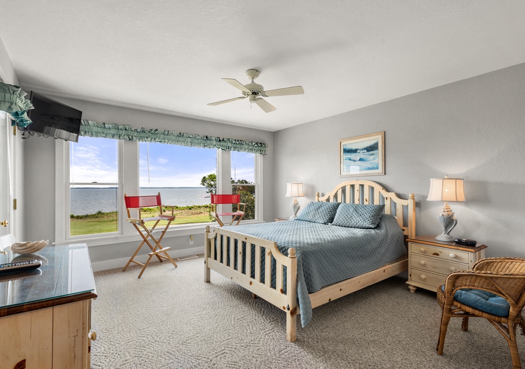 With its expansive glass design and open layout, Sand Hills South allows natural light to flood the space while offering unobstructed water views from multiple angles. The home boasts three master bedrooms, making it an ideal choice for families or groups seeking comfort and privacy.