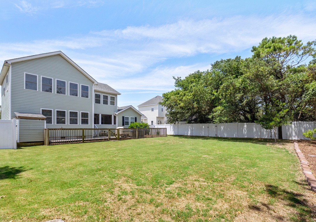 Anchor's Away is a lovely home situated in the highly sought-after and family-friendly community of Nags Head Acres. Enjoy the peace and seclusion of this residential soundside neighborhood while still being within walking or biking distance to shopping, dining and best of all - the beach! After a day of fun in the sun, come home and gather in the open-concept great room with hardwood floors and vaulted ceilings. A sliding door connects the space to a charming screened porch that opens up onto an expansive sun deck. This outdoor oasis includes a hot tub for soaking away the day and a grill for cookouts. The entire backyard is enclosed with privacy fencing and features a barefoot-friendly lawn perfect for kids, pets and yard games.