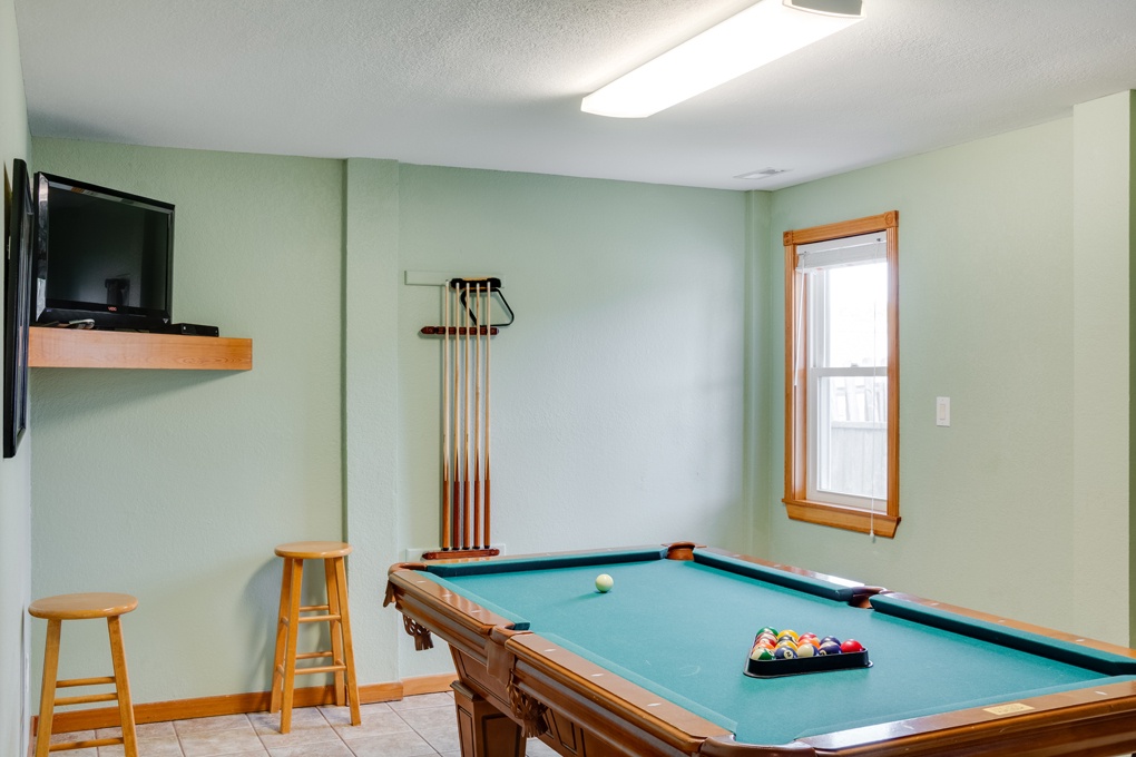 For fun-filled evenings, head to the rec room, where you can challenge family and friends to a game of pool or enjoy a meal at the picnic table. A high chair is provided for the little ones, ensuring that everyone in your group is well taken care of.