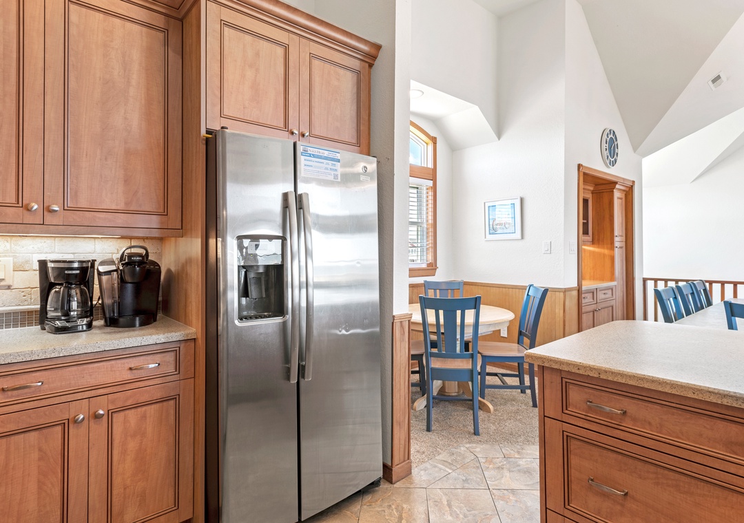 Inside, you'll find a wealth of amenities to enhance your stay, including TVs, DVD players, and a Blu-Ray player for entertainment, as well as WiFi to keep you connected. The kitchen area is equipped with two refrigerators and two wet bars, perfect for meal preparation and entertaining. An ice maker is also available to keep your drinks cool!