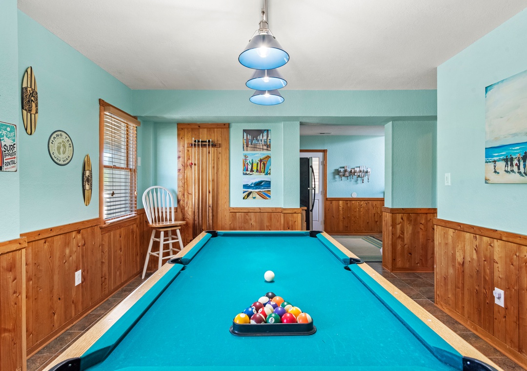 Two king suites are located on the top level off the main living area, both of which offer ocean views, private baths and deck access. Smart TV's throughout the home, including all seven bedrooms, ensure that everyone can keep up with their favorite shows and sports. On the mid-level you'll find four more bedrooms, including two additional king ensuites, as well as a den that can serve as a second hangout space. There's also a covered deck where you can relax in the shade while watching your family splash in the pool below. The seventh bedroom and a full bath are located downstairs, along with a rec room where guests can show off their billiard skills on the pool table. A ground level wet bar is equipped with a full-size fridge and free-standing icemaker so you can easily refill your beverage or grab a snack to enjoy poolside. Lounge by the 28' x 14' private pool or take a relaxing soak in the bubbly hot tub. The pool can be heated certain times of the year, ideal for off-season getaways.