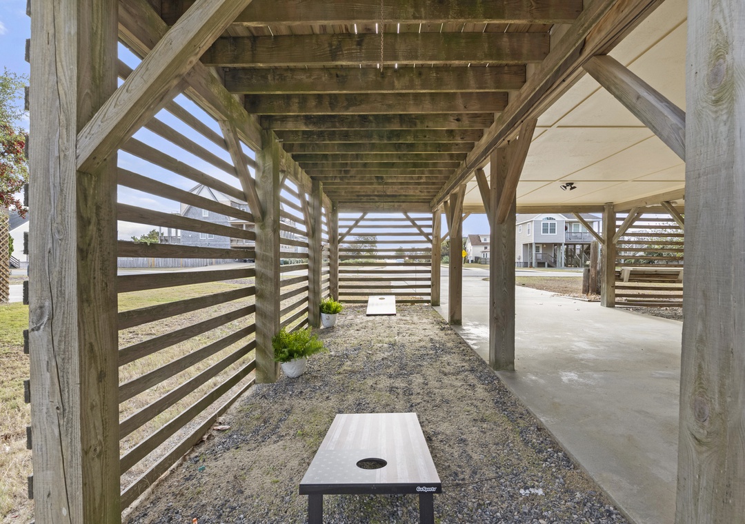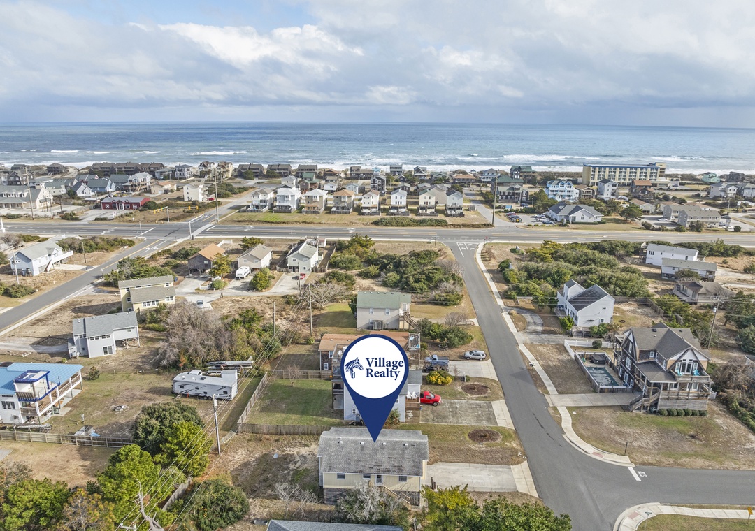All living space is on one convenient level, featuring a bright and open living room and kitchen ideal for gathering. The home includes a room with a twin-over-twin bunk bed, two rooms with queen beds, and a spacious king bedroom. There is a full hallway bath, and a Jack-and-Jill shared bath between two bedrooms for added convenience. Step outside to enjoy the furnished deck, perfect for relaxing after a day at the beach. Downstairs, you’ll find a carport and laundry area. Located in the desirable Old Nags Head Cove community, this home is close to local dining, shopping, and the beautiful Outer Banks beaches, your coastal getaway starts here!