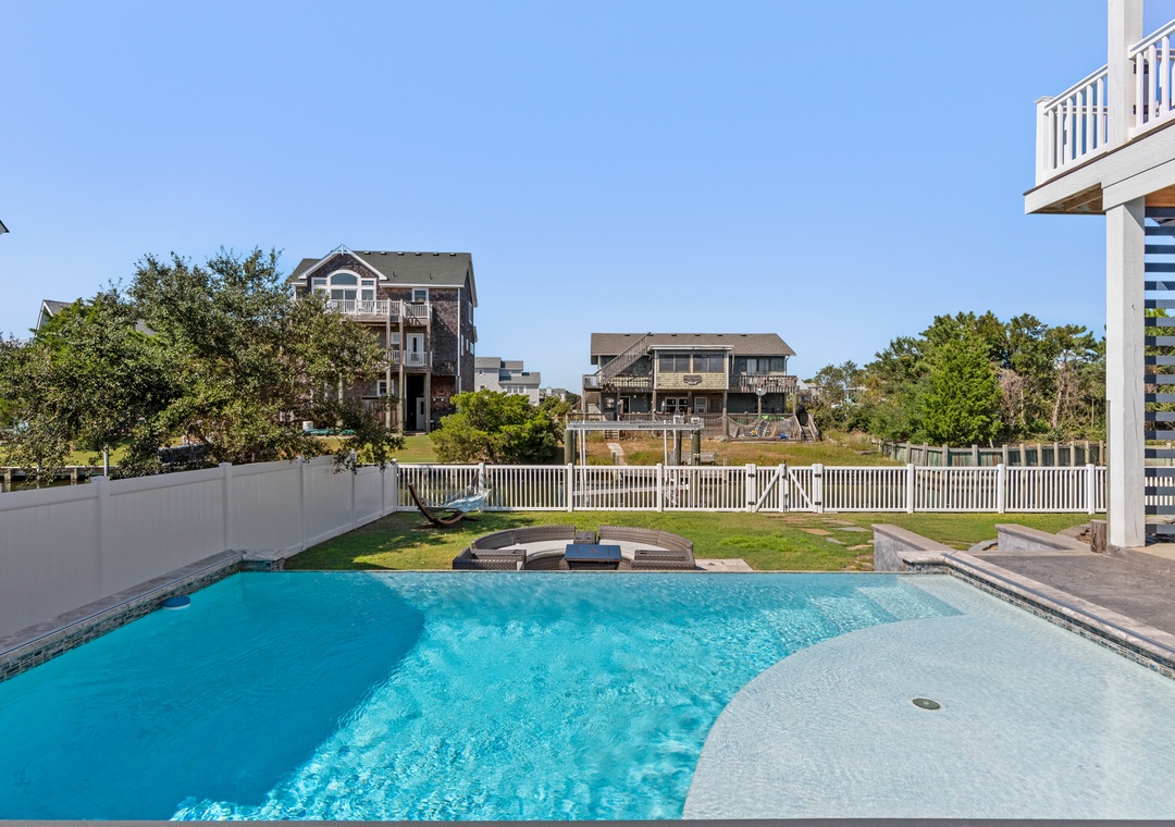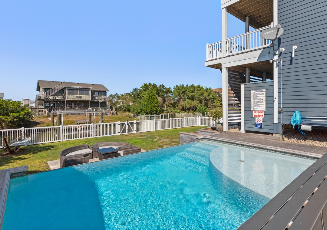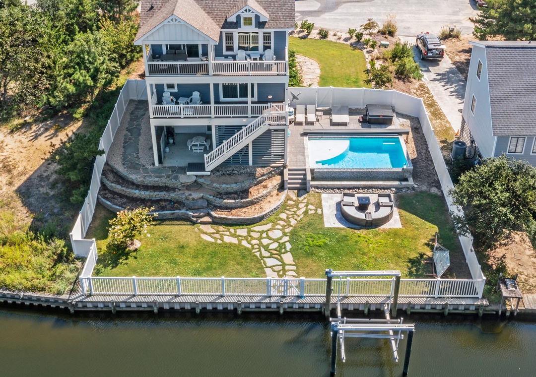 Experience Sound Living at its best in this exquisite, custom-designed, canal-front home, located in Old Nags Head Cove. Relax and unwind in the beautifully landscaped backyard oasis with a heated, saltwater infinity pool and hot tub. Chefs in the family are going to love the well-appointed kitchen with a 6 burner gas range and the refrigerator with a built-in K cup coffee maker. Enjoy some family time in the spacious great room whether you are dining or watching movies or gather on the deck for some awesome views of the water and sunsets. No need to worry about carrying groceries or luggage up the stairs, the elevator gives access to all levels.