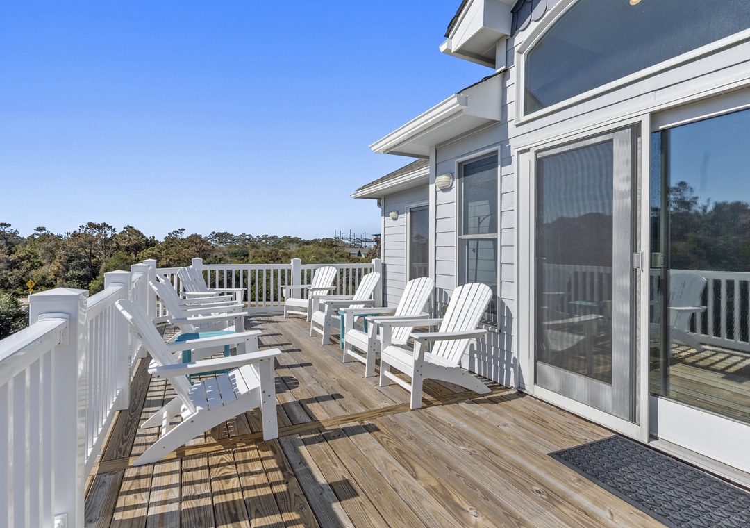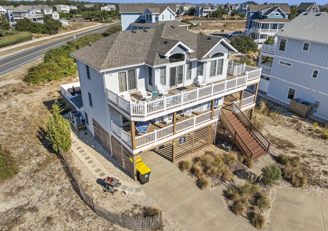On the top level, the open concept living area flows into the dining space and fully equipped kitchen. The main king ensuite bedroom is located on this level with an attached full bath. After all of the entertaining inside, step out onto the large sun deck that invites you to soak up the sun and coastal breezes.