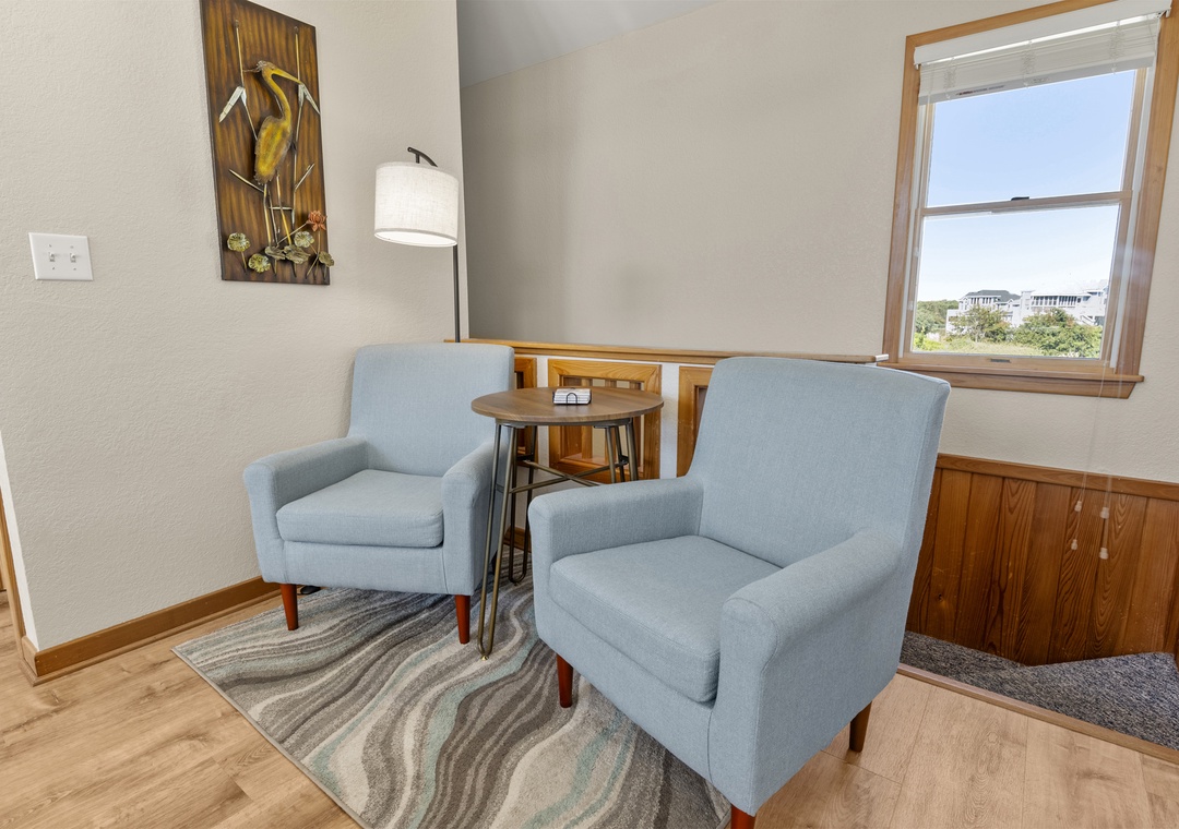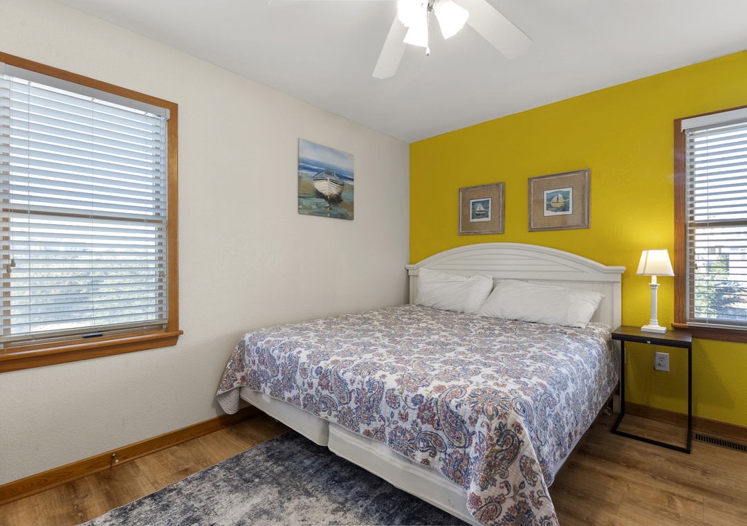 Upstairs, the main entry opens to a cozy sitting area and three spacious bedrooms, two of which are ensuites with attached full baths. A full hall bath on this level is not the only bonus, the covered front porch with a charming swing invites you to kick back, relax, and soak in the coastal vibes.