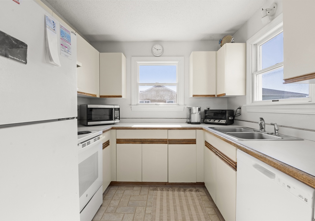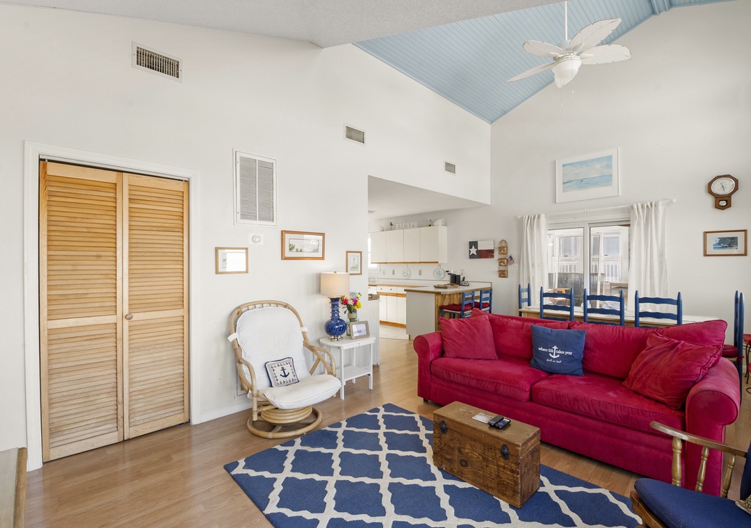 Starting on ground level, you’ll find the primary entry along with a convenient laundry room equipped with a washer, dryer, and a second refrigerator. Step outside to enjoy an enclosed outdoor shower, a foot wash station, grills for cooking, a hot tub and a saltwater pool! There’s also a basketball hoop and parking for up to four vehicles.