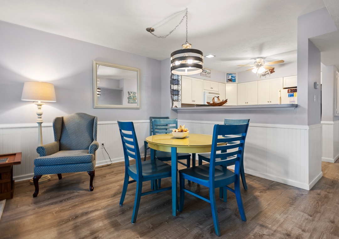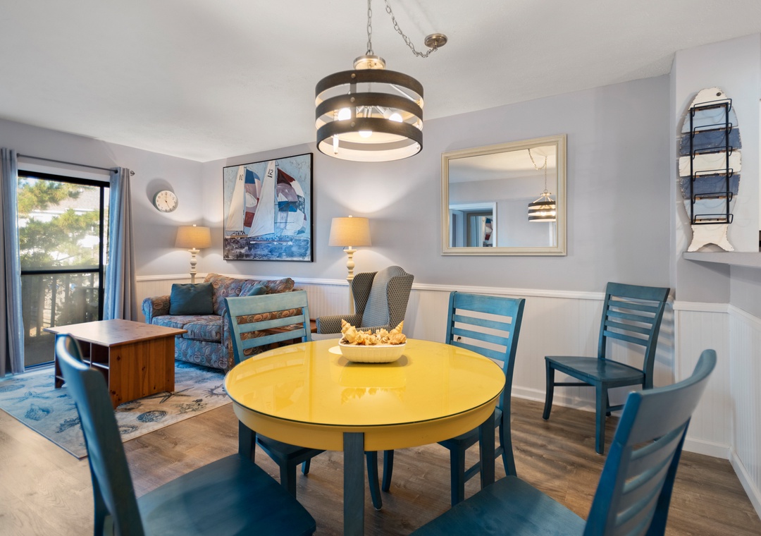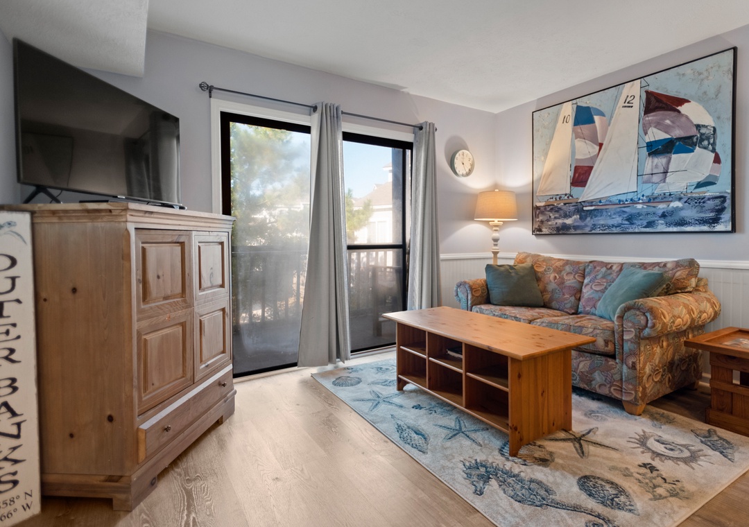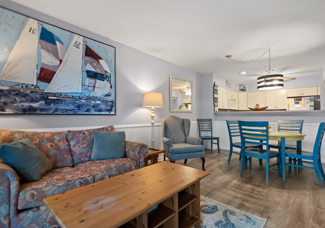 Perfect for small families or a couple's getaway, this cozy two-bedroom condo provides guests with convenient access to the beach plus all the essentials for a comfortable stay. Beach Place is an end-unit for more privacy, with access to your own covered deck space where you can hear the ocean and taste the salt air. The oceanside location means a short, safe walk to the beach using the wooden walkway located directly across the street. The open-concept living, dining, and kitchen areas feature new LVT flooring throughout that is both stylish and kid-proof. With an excellent location between Duck and Corolla, the Seaside Villas condos in Ocean Sands are a short drive from all the entertainment and conveniences of both towns, including shopping, restaurants, movie theaters, and golf. The new Corolla bike path connects all of Ocean Sands north to Whalehead.