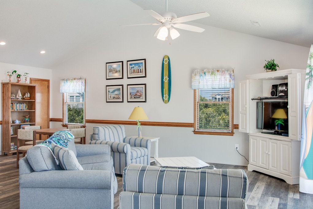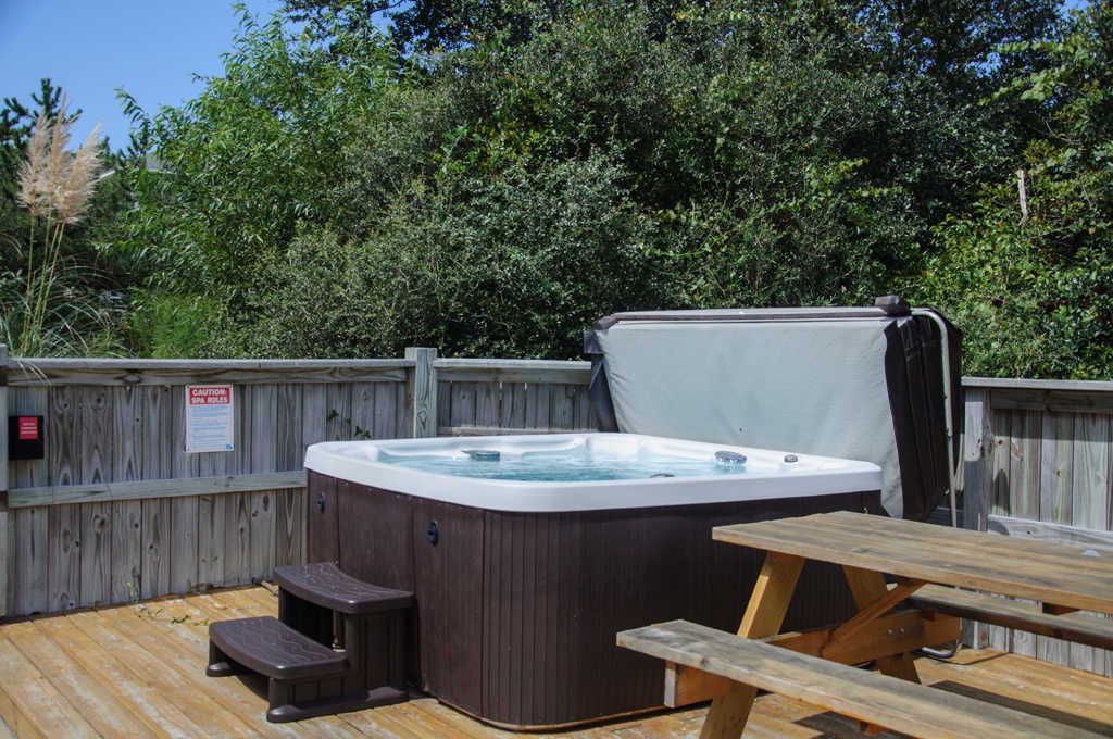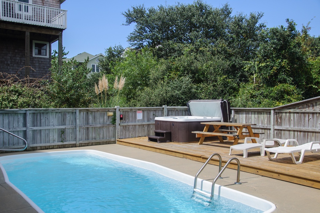 Amenities include: 12' x 27' pool (non-heated), hot tub, jetted tub, hammock, TVs, DVD players, high chair, pack-n-play, 2 picnic tables, outside shower and park grill. Also enjoy Ocean Sands tennis court privileges.