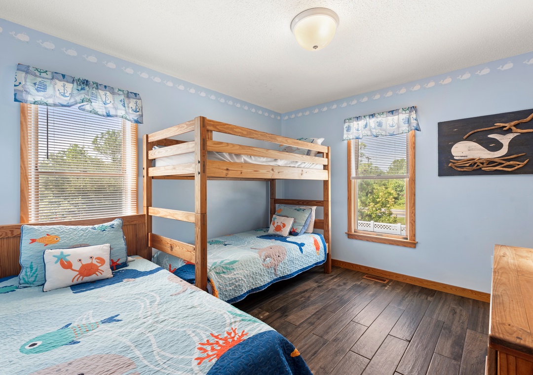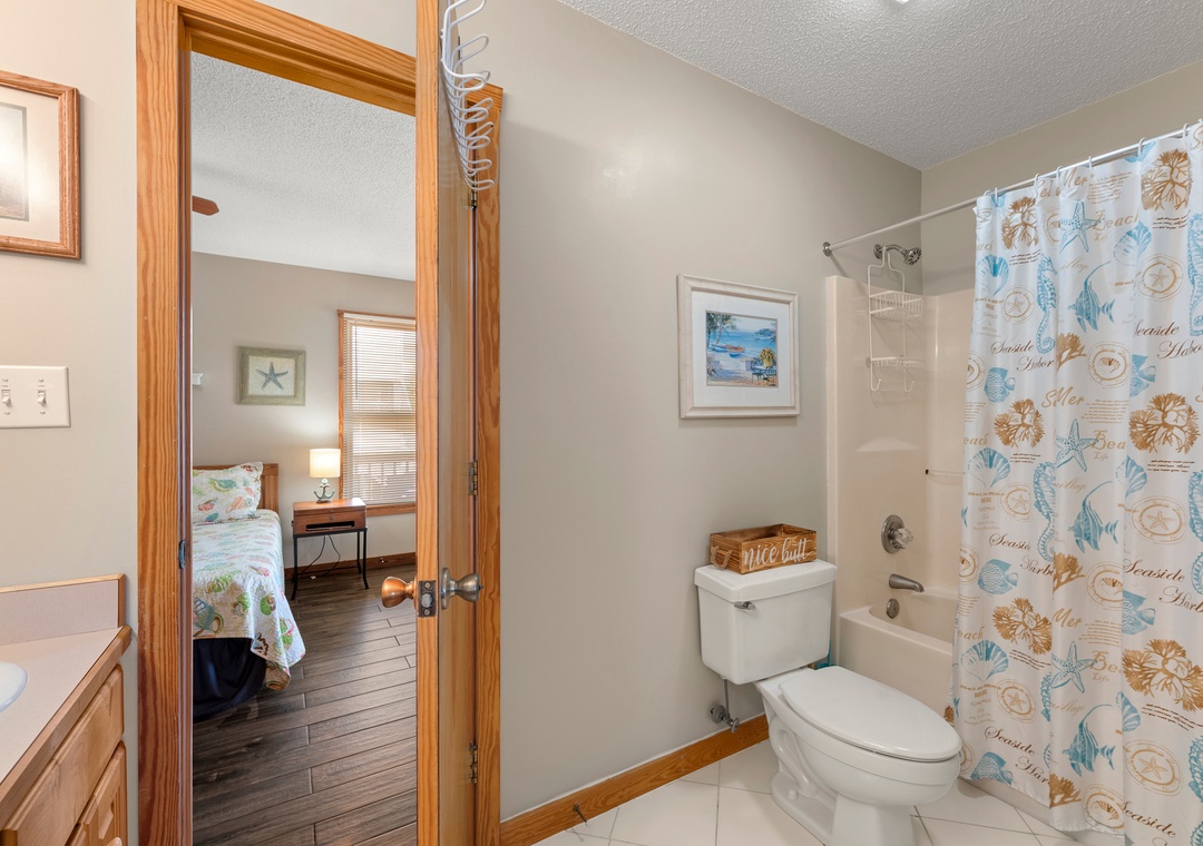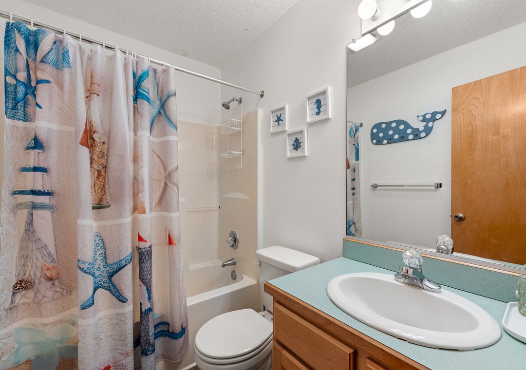 Start your vacation right with a dip in the fully gated private heated pool or a relaxing soak in the hot tub. Rinse off in the outdoor shower, fire up the grill, and enjoy the laid-back vibes of the carport hangout zone. Inside, the middle level is made for cozy comfort, featuring two queen bedrooms connected by a jack-and-jill bathroom, plus two fun bunk rooms, a full hall bath, and a laundry area to keep beach towels fresh and ready.