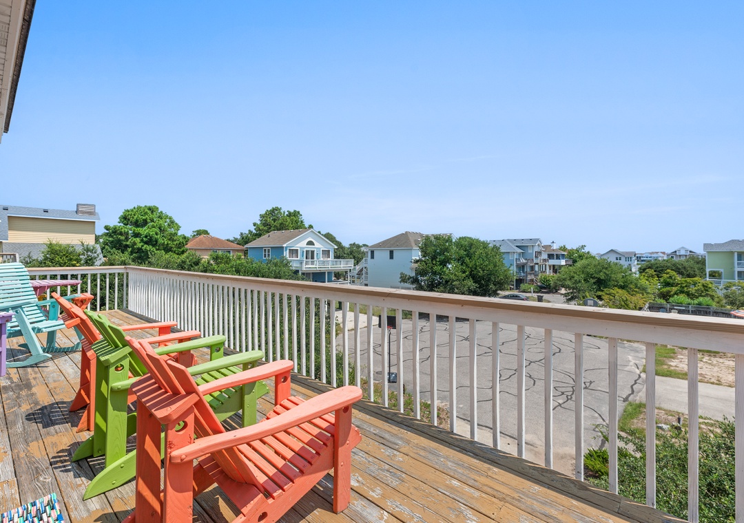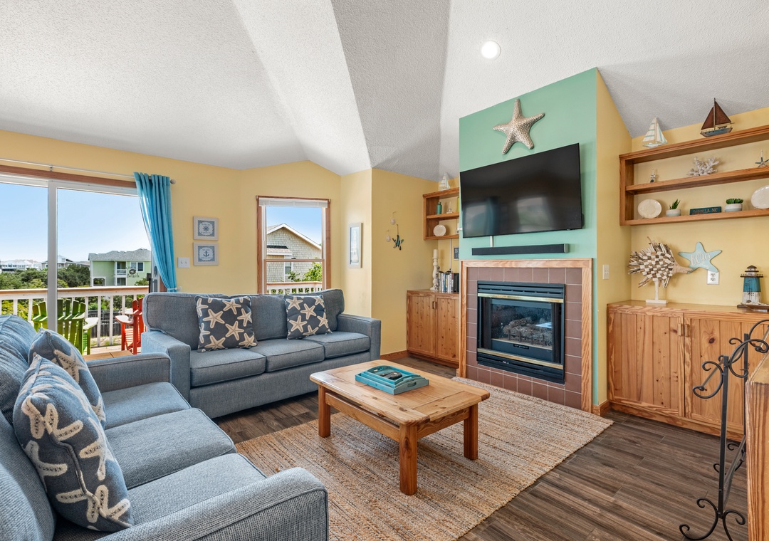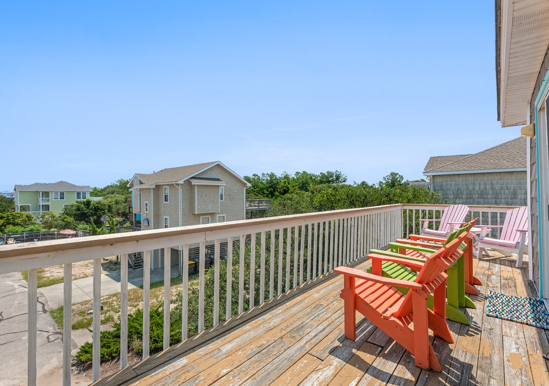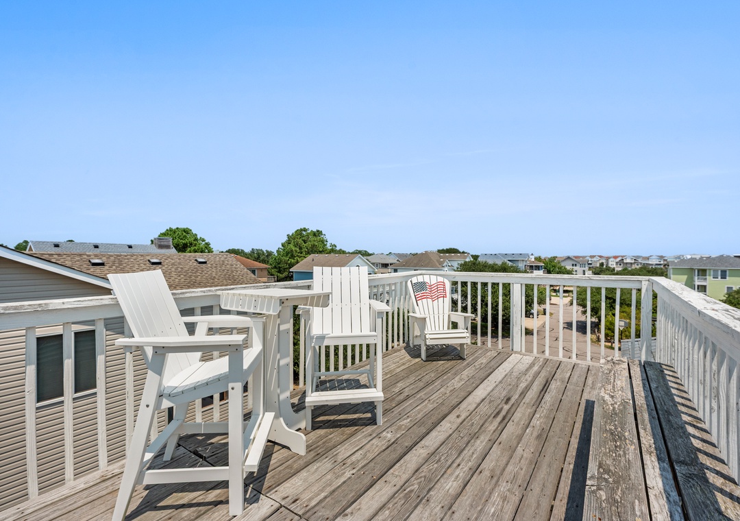 Outside, soak up the sun on the spacious deck or climb up to the crow’s nest for panoramic views of the nearby golf course and a front-row seat to Corolla’s stunning sunsets.