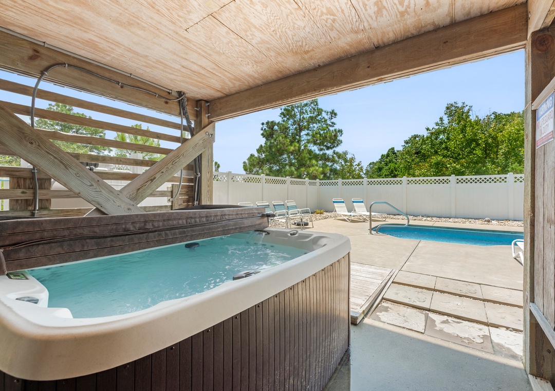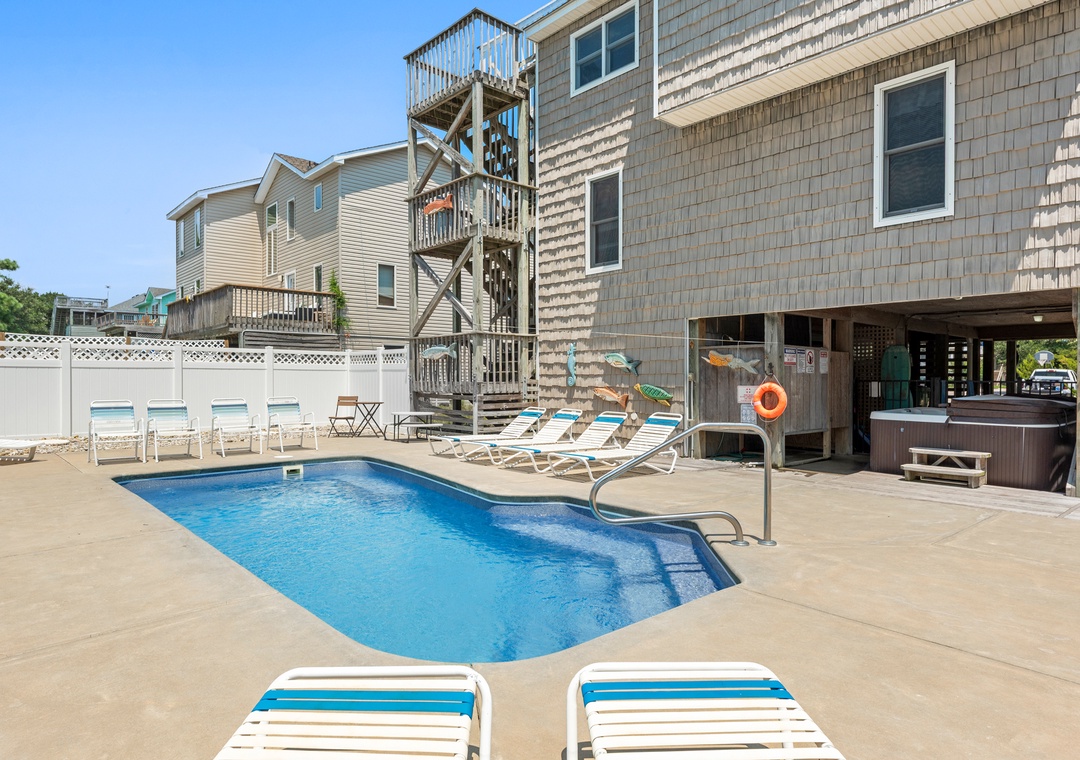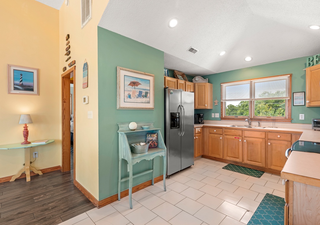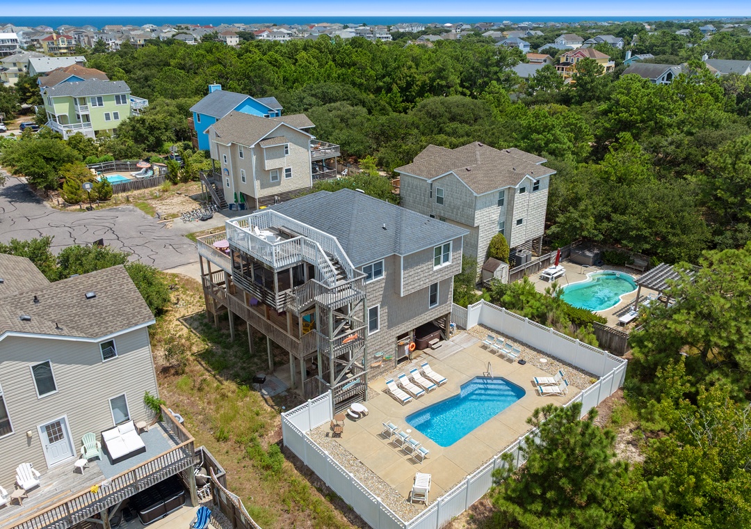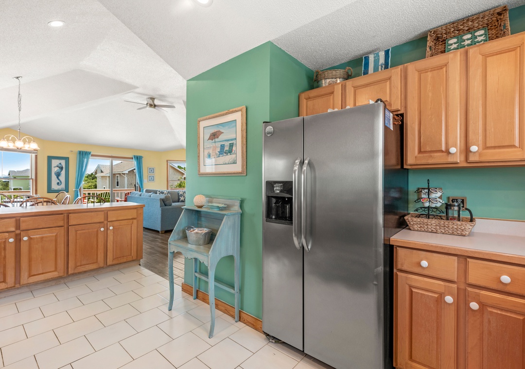 Outside, soak up the sun on the spacious deck or climb up to the crow’s nest for panoramic views of the nearby golf course and a front-row seat to Corolla’s stunning sunsets.