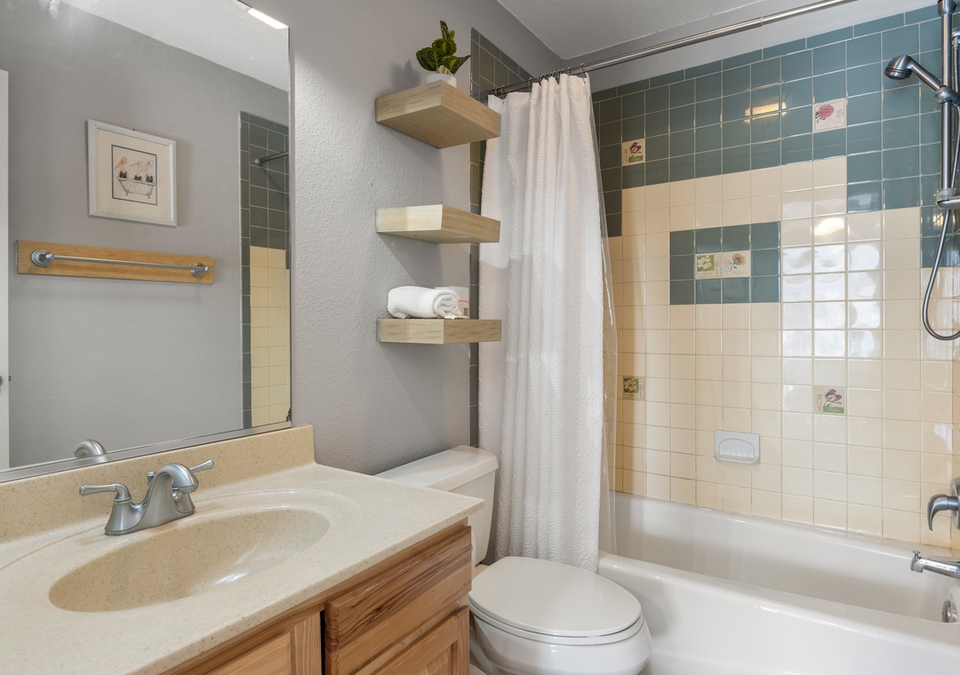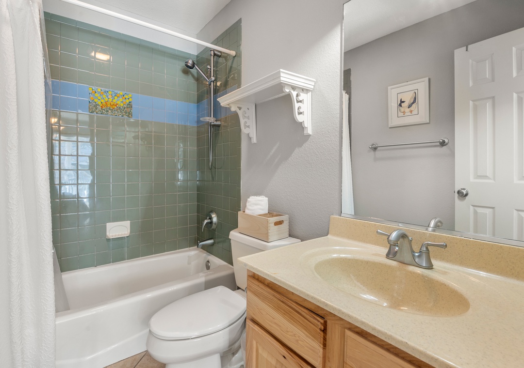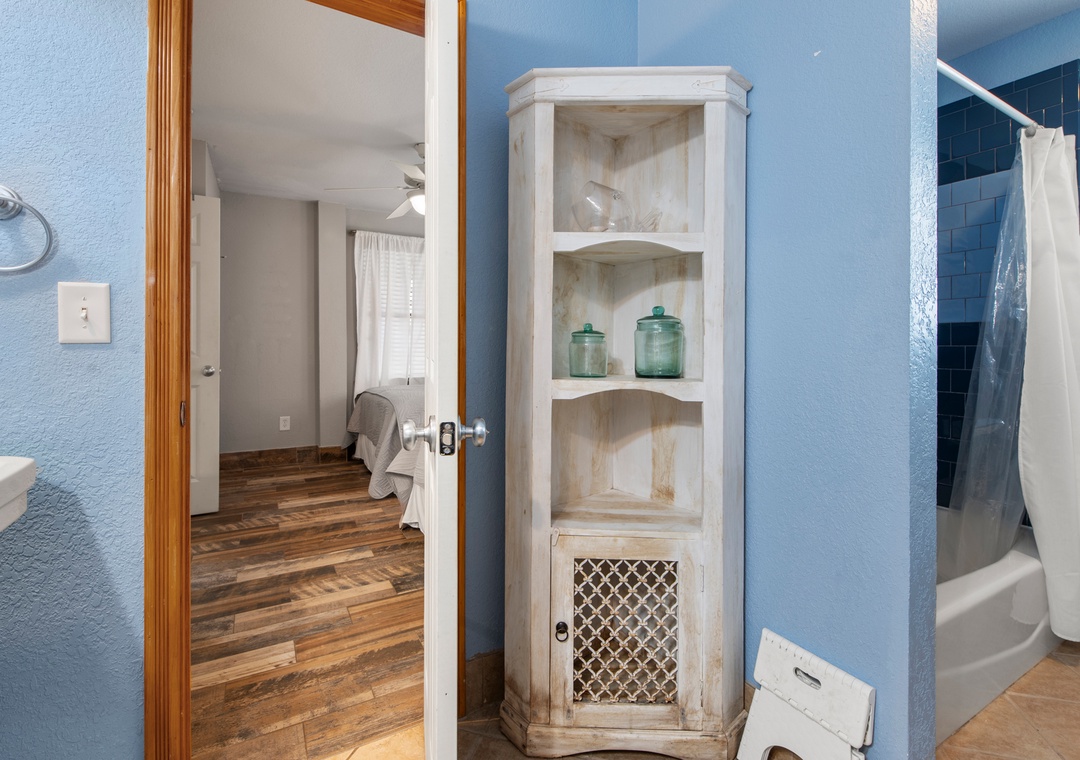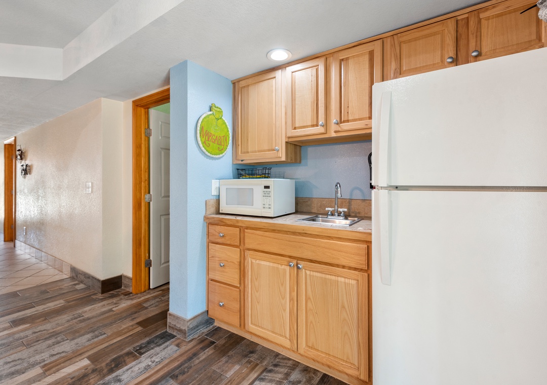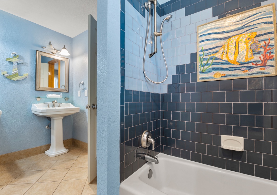 With over 3,500 square feet of comfortably furnished living space, Joshua's Place is ideal for extended families or multiple groups vacationing together. Four more bedrooms are located on the mid-level, all of which have king beds, ensuite baths and deck access. The den with sofa and TV can serve as an additional living area, and also provides a desk for staying caught up with work or school remotely. This room opens up onto a covered deck with hot tub that overlooks the pool area below. The fun continues downstairs in the game room with a pool table, wet bar and full-size fridge - perfect for poolside drinks and snacks! A half bath on the ground floor can be conveniently accessed directly from the pool area. Two more bedrooms that share a Jack-and-Jill bath are also located on this level.